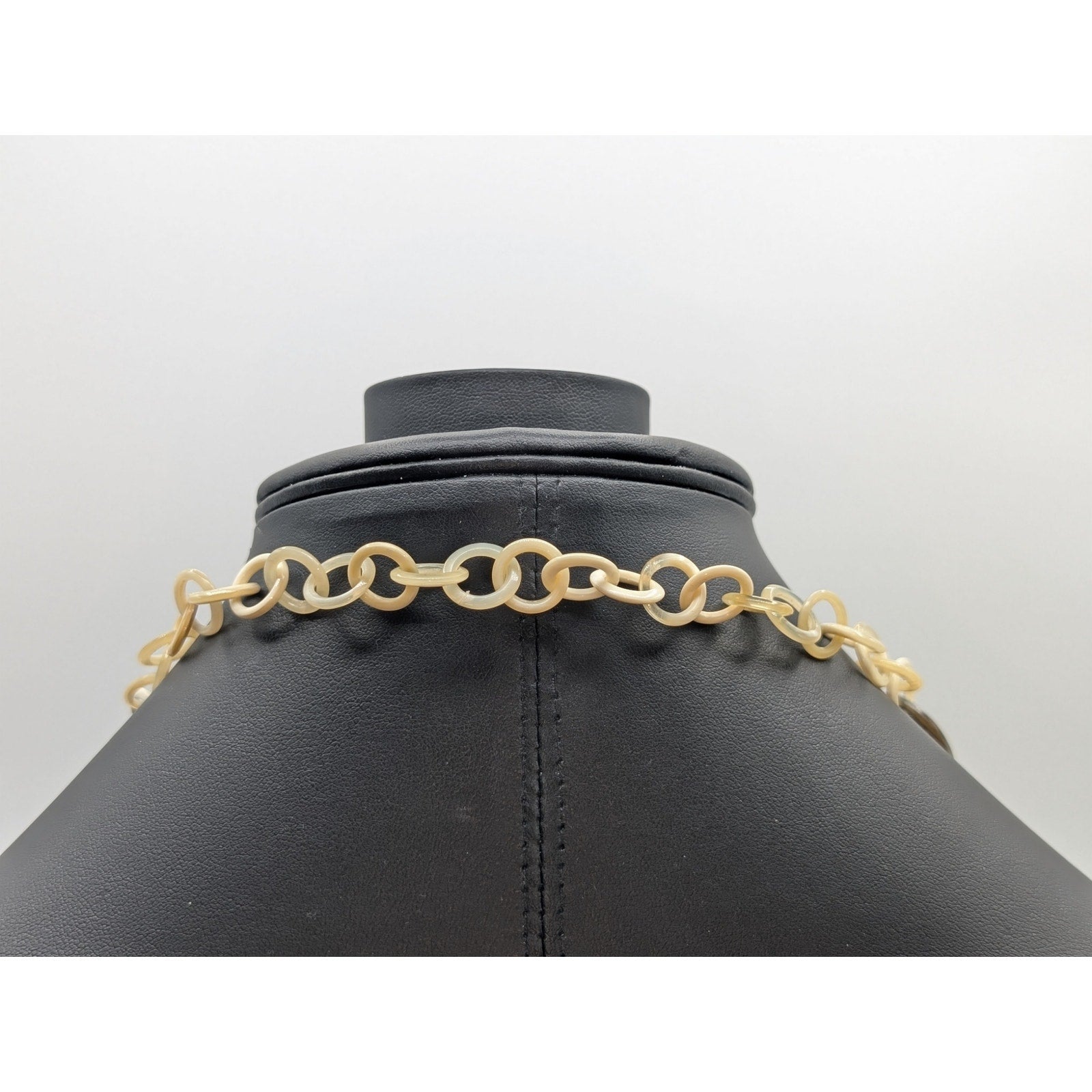 Artisan Created Boho Wood Look Lucite Oval Disk & Loopy Chain 32" Necklace