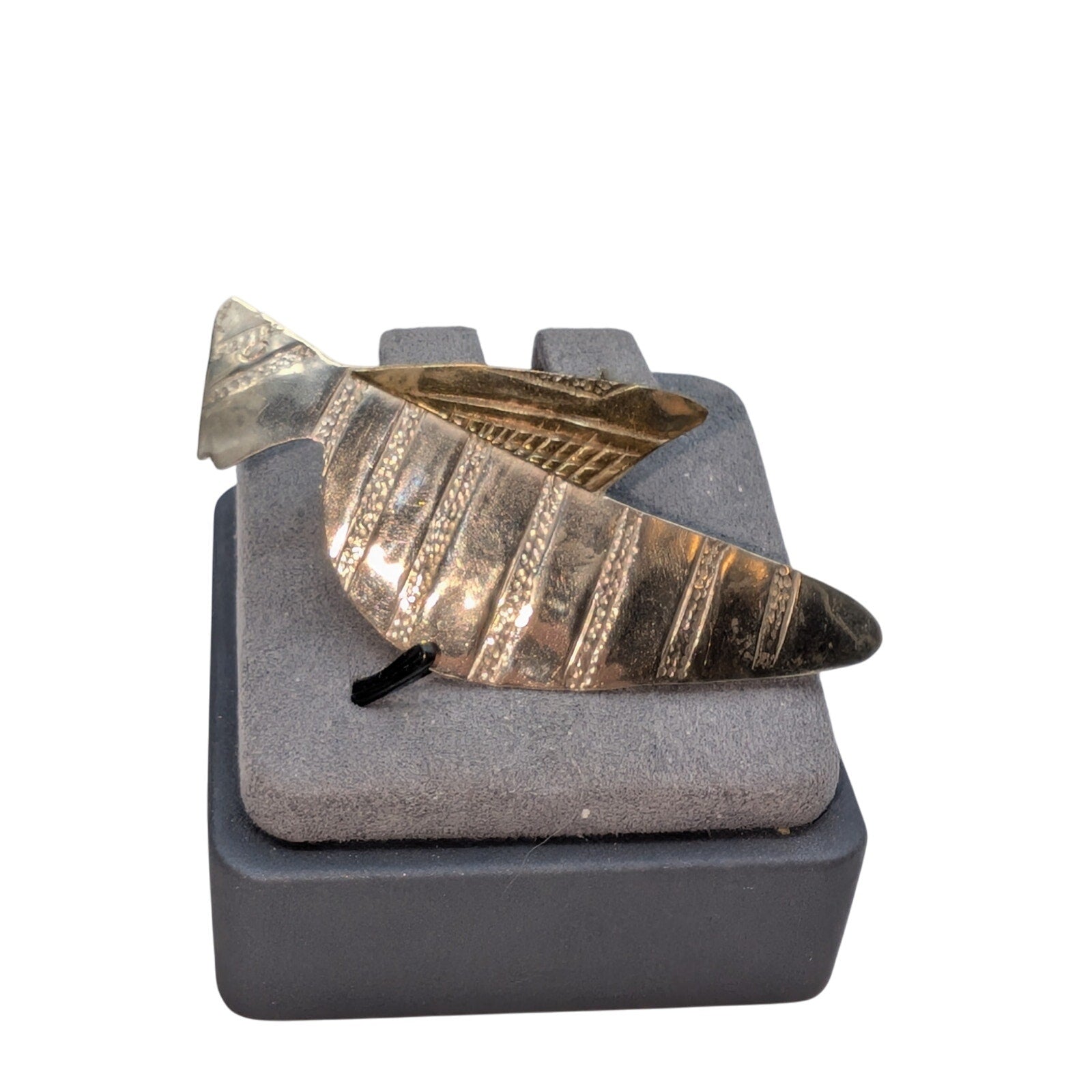 Artisan Hand Crafted Abstract Modernist Two Tone Embossed Bird Pin. Pre-owned, this pin is in excellent condition.