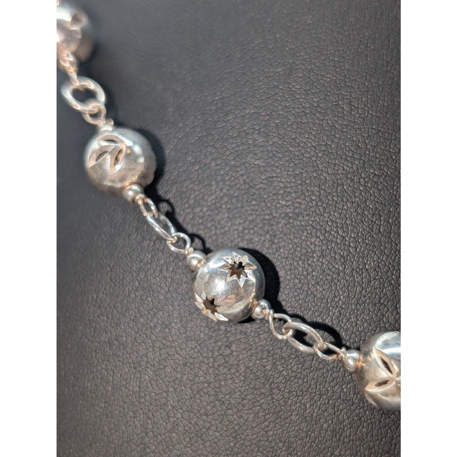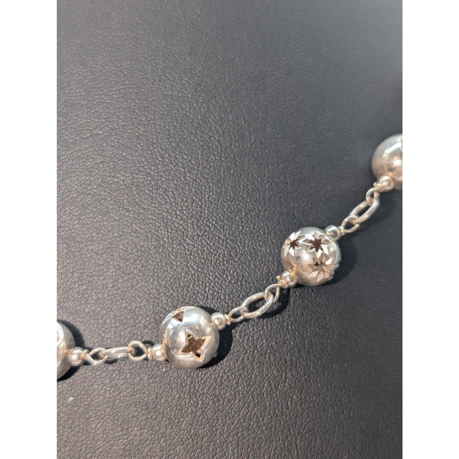 Authentic Dobbs Italy 925 Sterling Silver Cut Out Star Ball Bead Chain Necklace. Pre-owned, this necklace is in excellent condition.