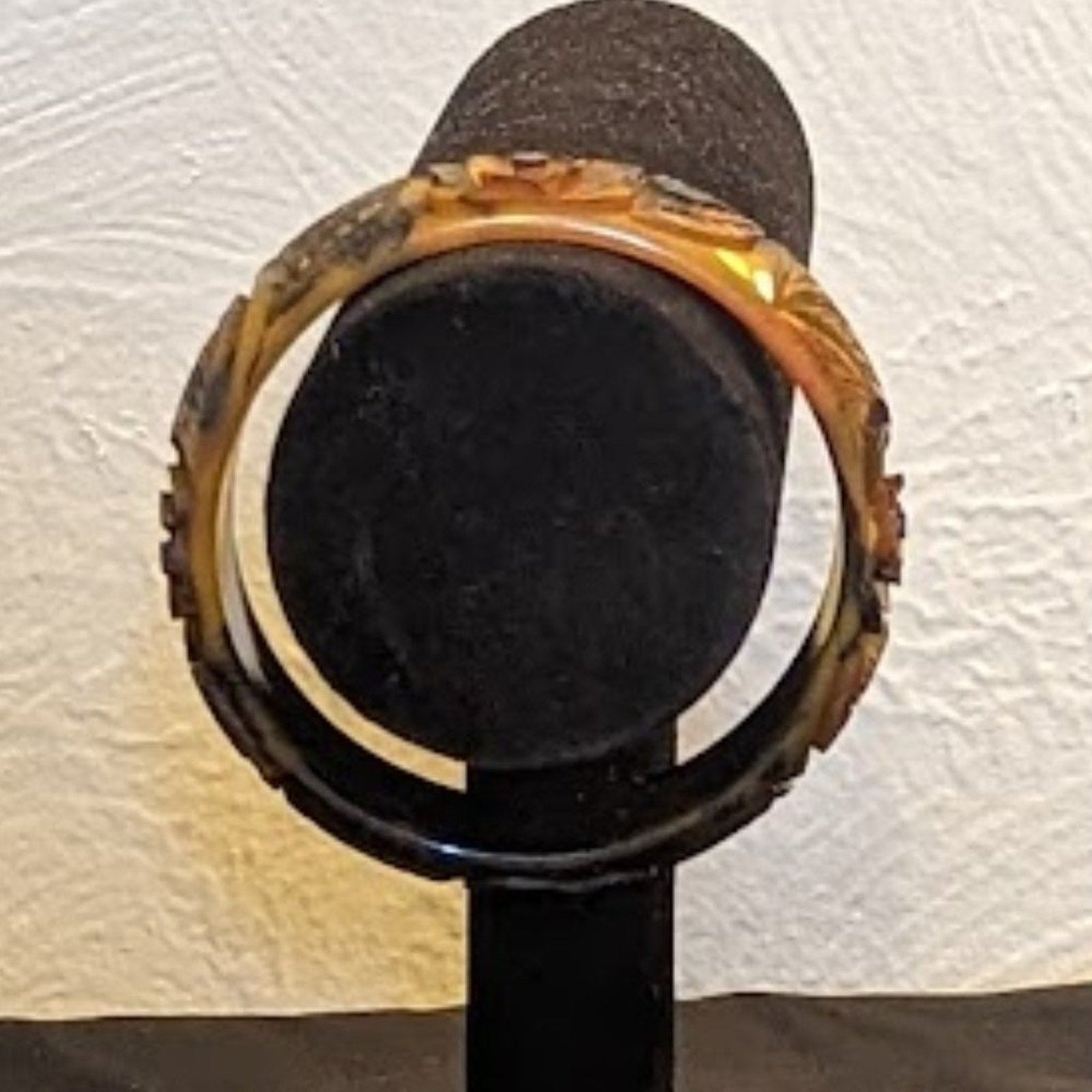 Bakelite! Rare Carved Translucent End of Day Roses Bakelite Bangle Bracelet