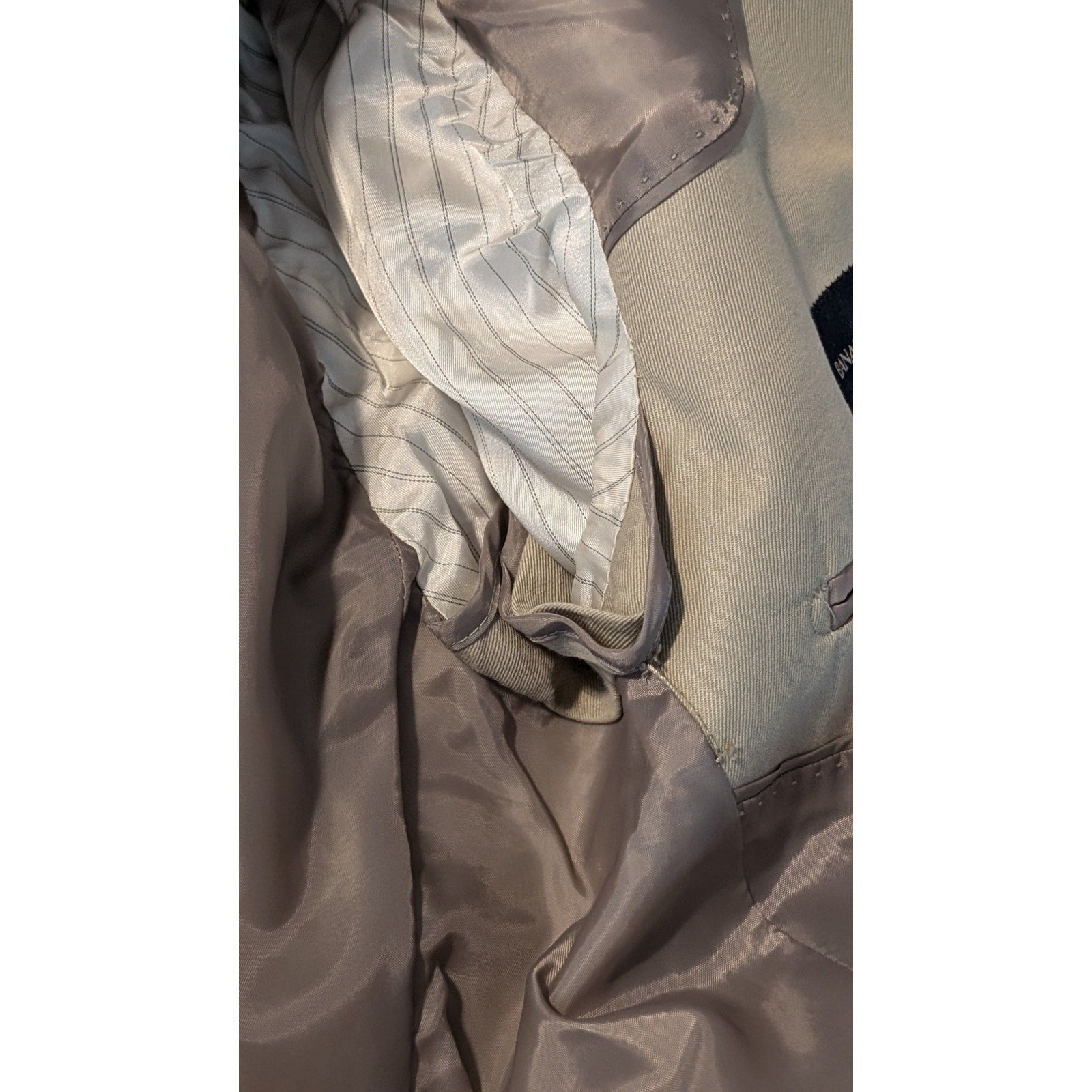 Banana Republic Men's Made in Egypt Tan Cotton Linen Blend Sports Coat Size 38R. Pre-owned, this jacket is in excellent condition. It measures 20" from armpit to armpit, 25.25" in the sleeves from shoulder seam, and 30.5" long. Lined. Beautiful drape and feel. Great for the office, a wedding, church, date night. Two button front.
