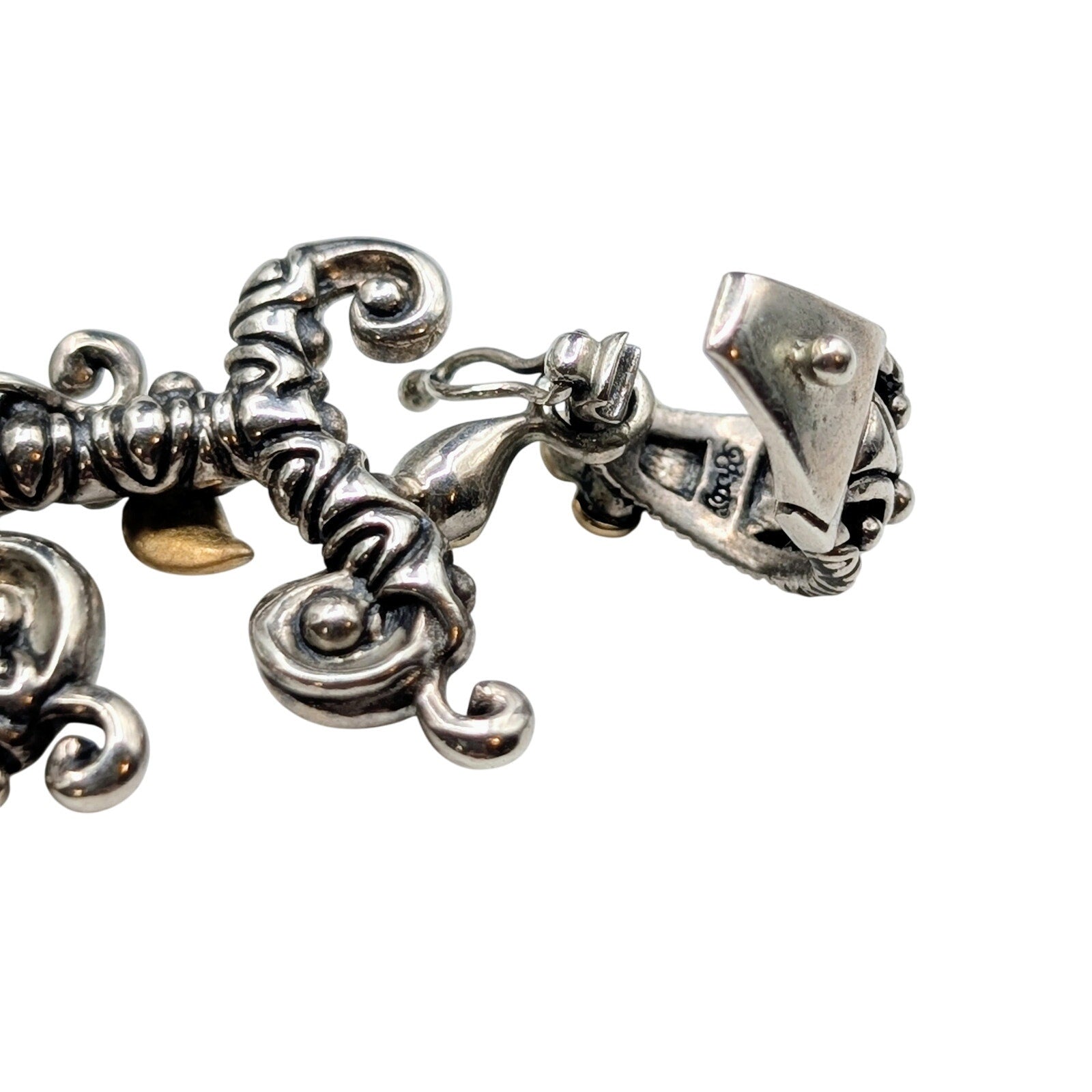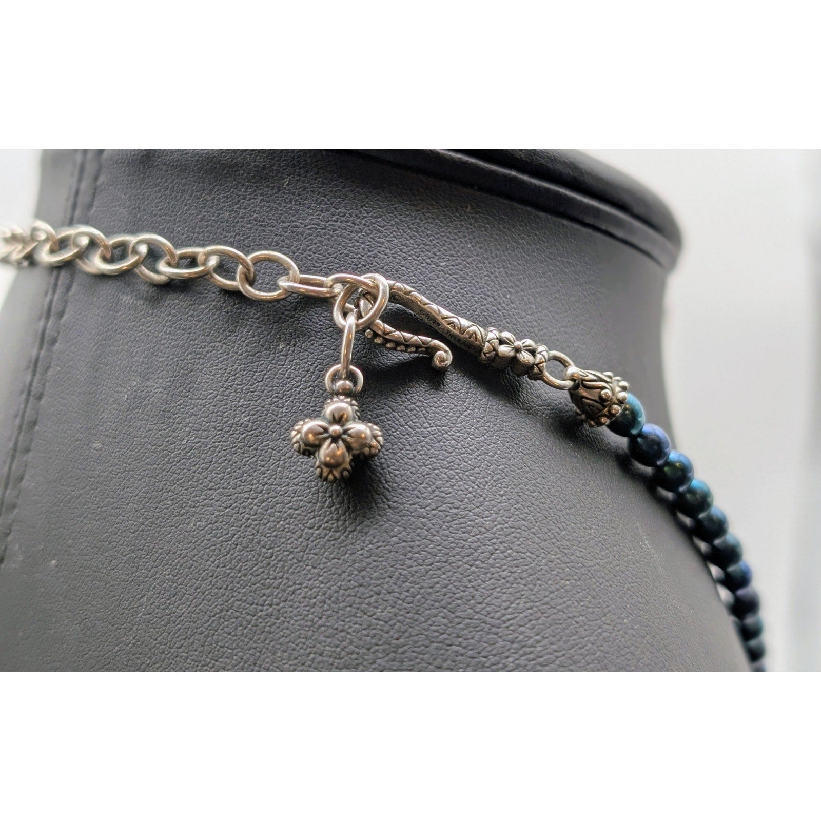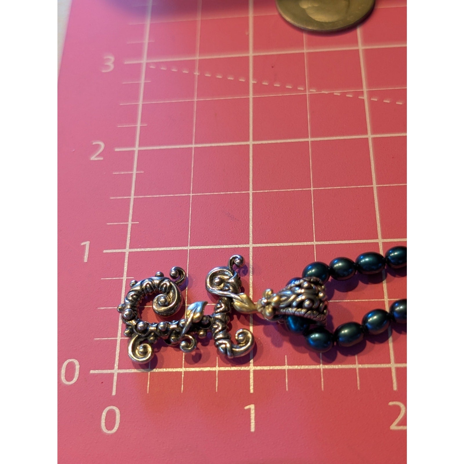 Barbara Bixby Sterling & 18K Gold Initial Letter 'J' Removable Enhancer Pendant Blue Freshwater Pearl Necklace 27.9 grams. Measures 16"-20" with extender chain. Hook clasp. Pre-owned, this necklace is in excellent condition.