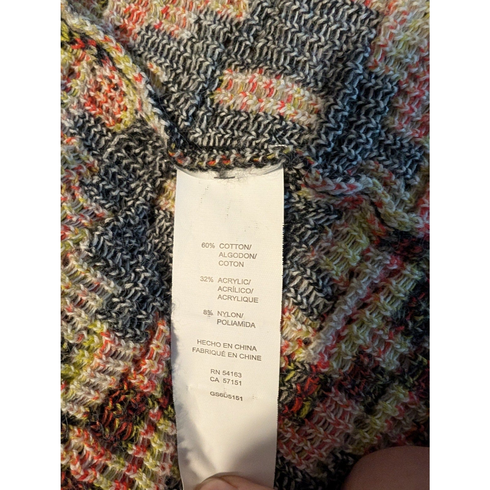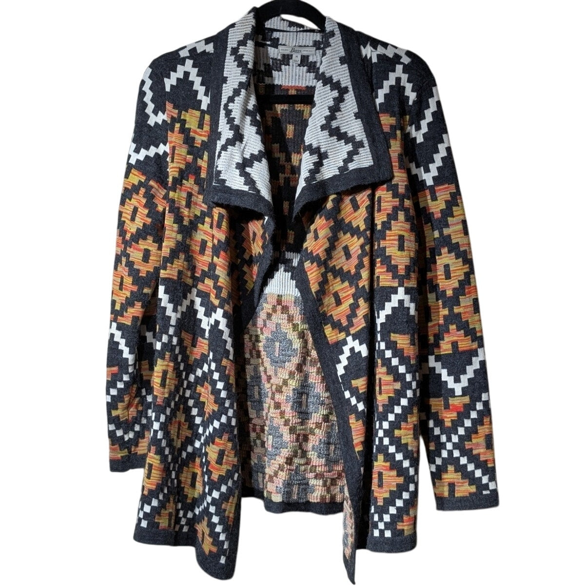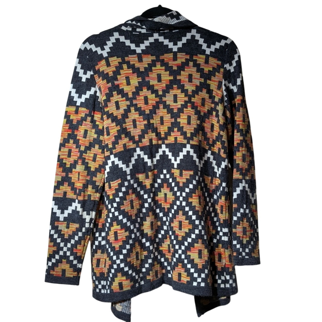 Bass Multicolor Geometric Print Long Sleeve Open Front Cardigan Sweater Size M