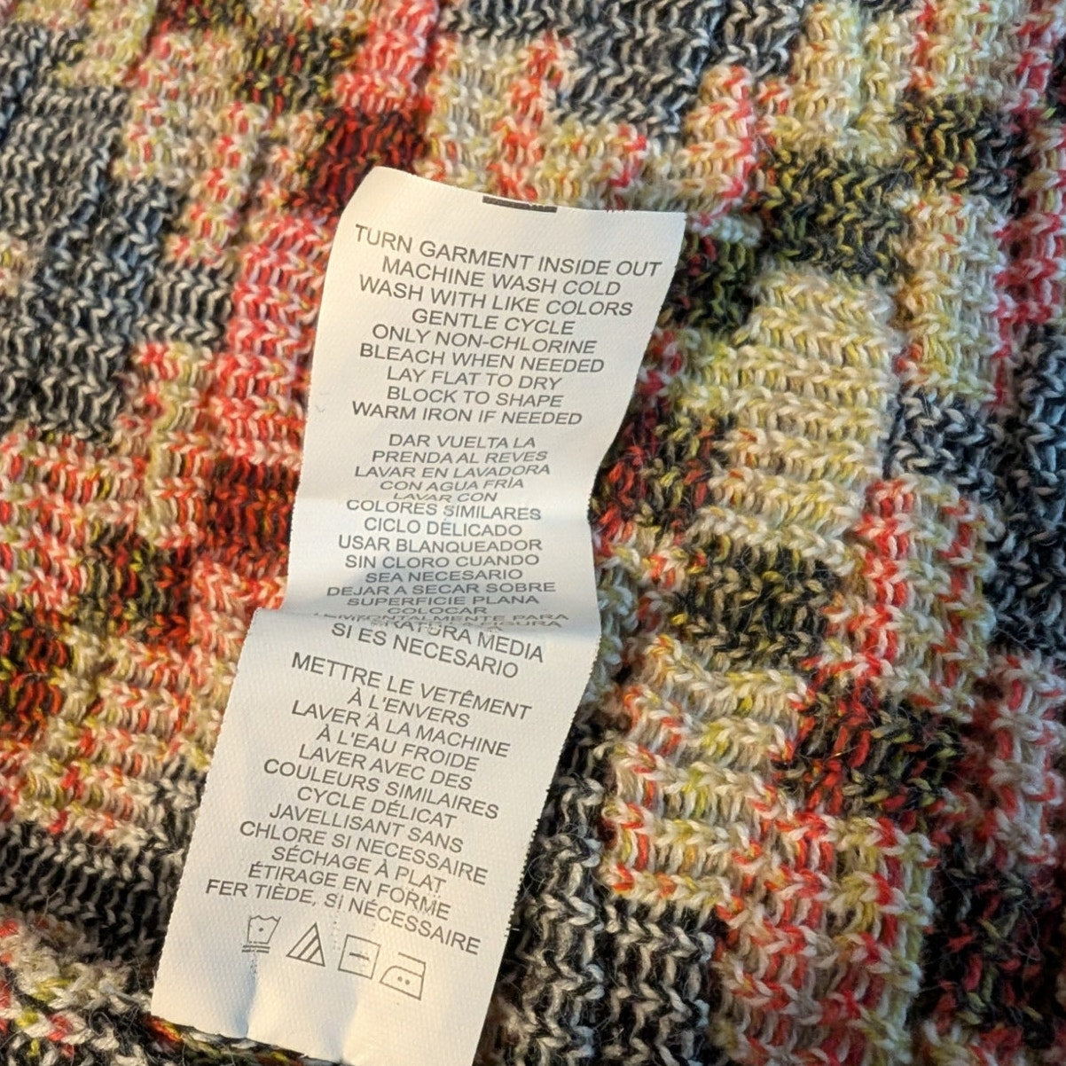 Bass Multicolor Geometric Print Long Sleeve Open Front Cardigan Sweater Size M. Pre-owned, this sweater is in great condition. Minimal pilling. Length is approximately 28" and sleeve length is approximately 24".