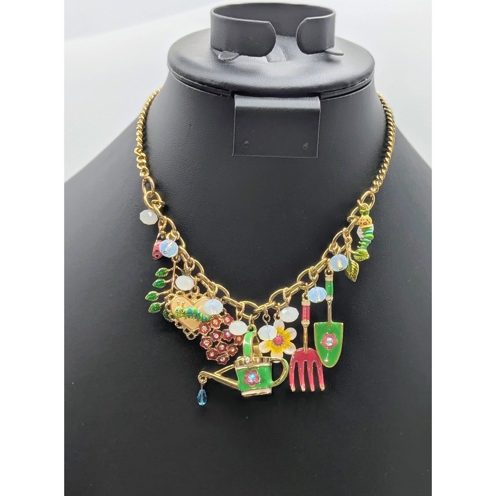 Betsey Johnson Garden Party Gold Tone Charm Dangle 15.75"-18.75" Necklace. Pre-owned, this necklace is in great condition.