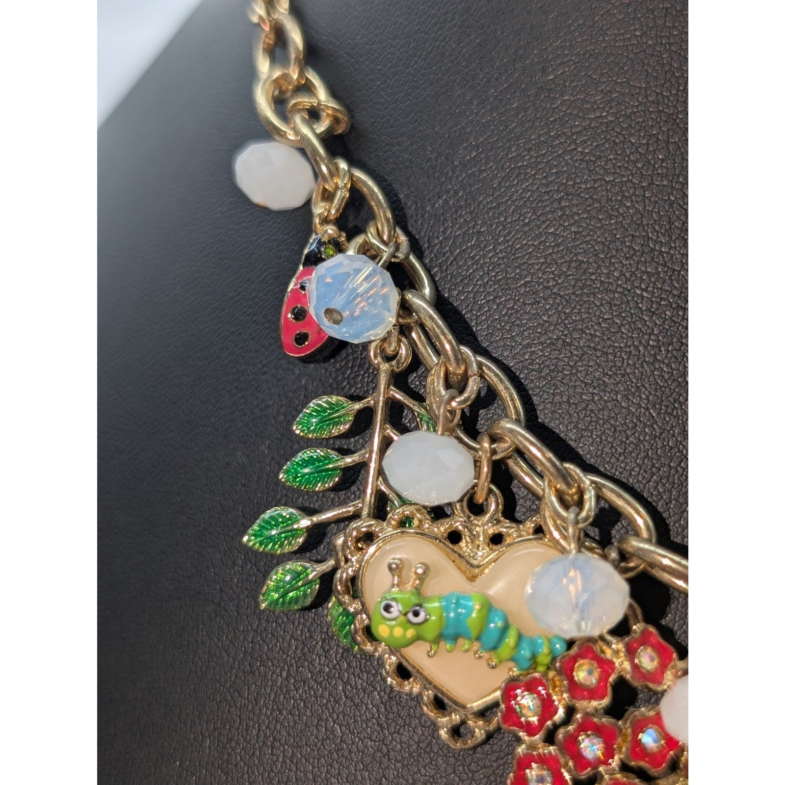 Betsey Johnson Garden Party Gold Tone Charm Dangle 15.75"-18.75" Necklace