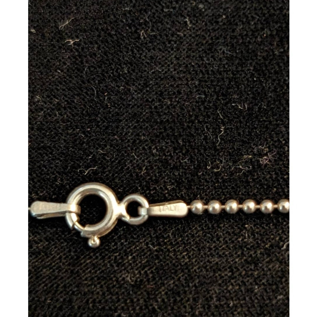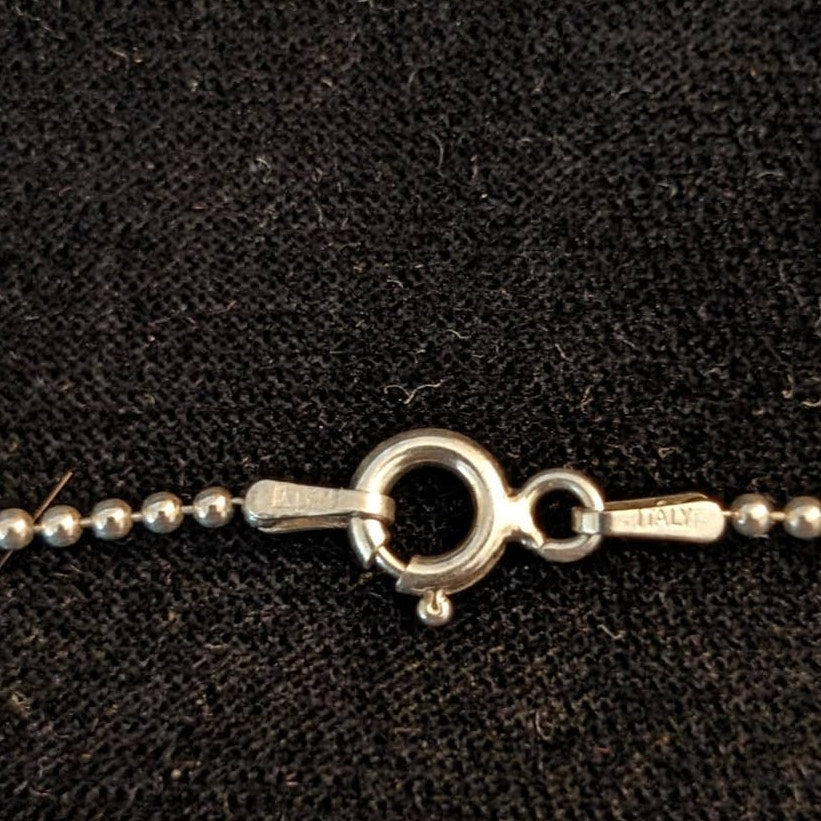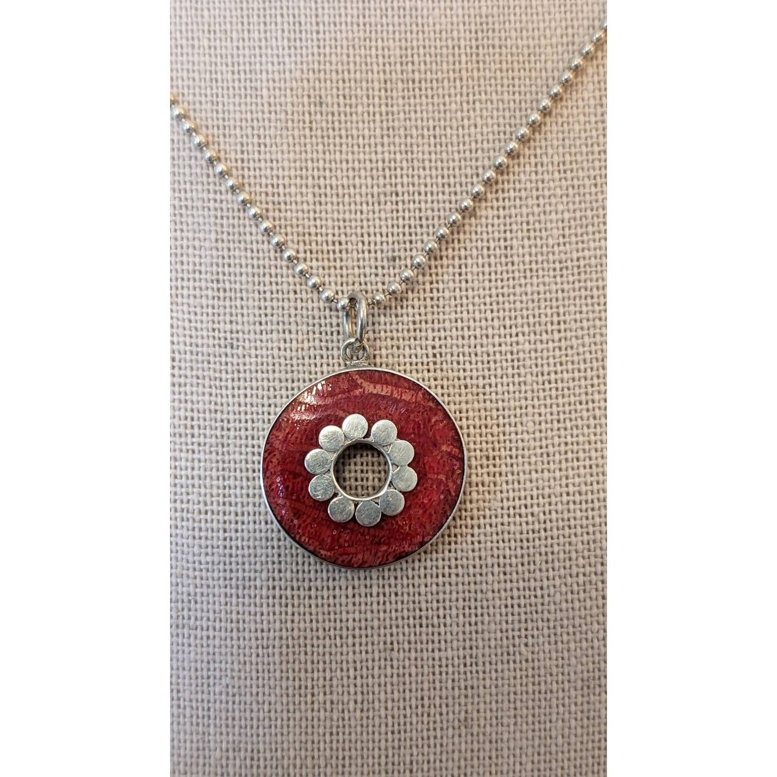Bezel Set Oval Red Coral Pendant on Italian 925 Sterling Bead Ball 16" Chain. Pre-owned, this coral pendant necklace is in excellent condition. Modern, retro, Y2k vibe.