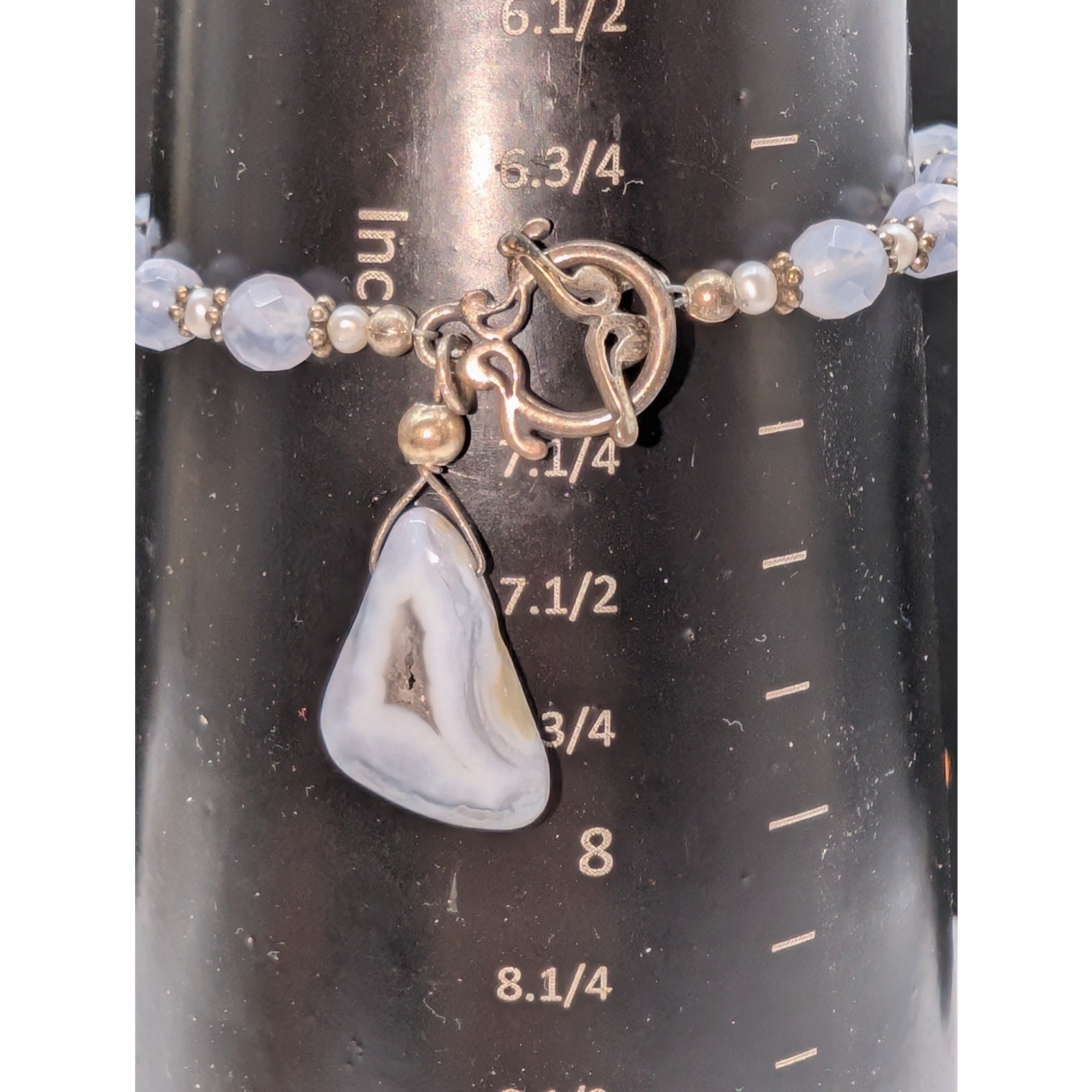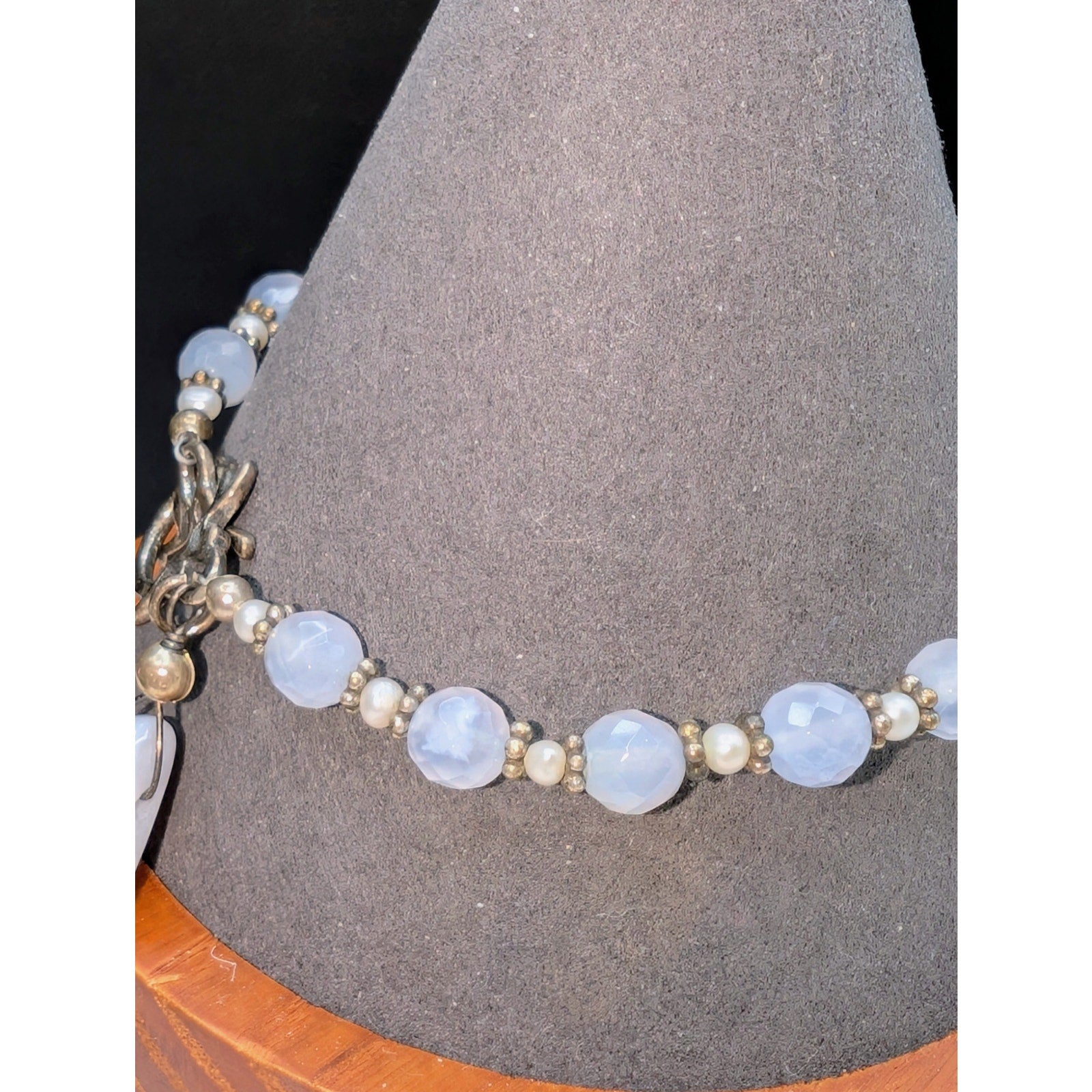 Blue Agate Seed Pearl Beaded Toggle Closure Bracelet. Pre-owned, this bracelet is in excellent condition.