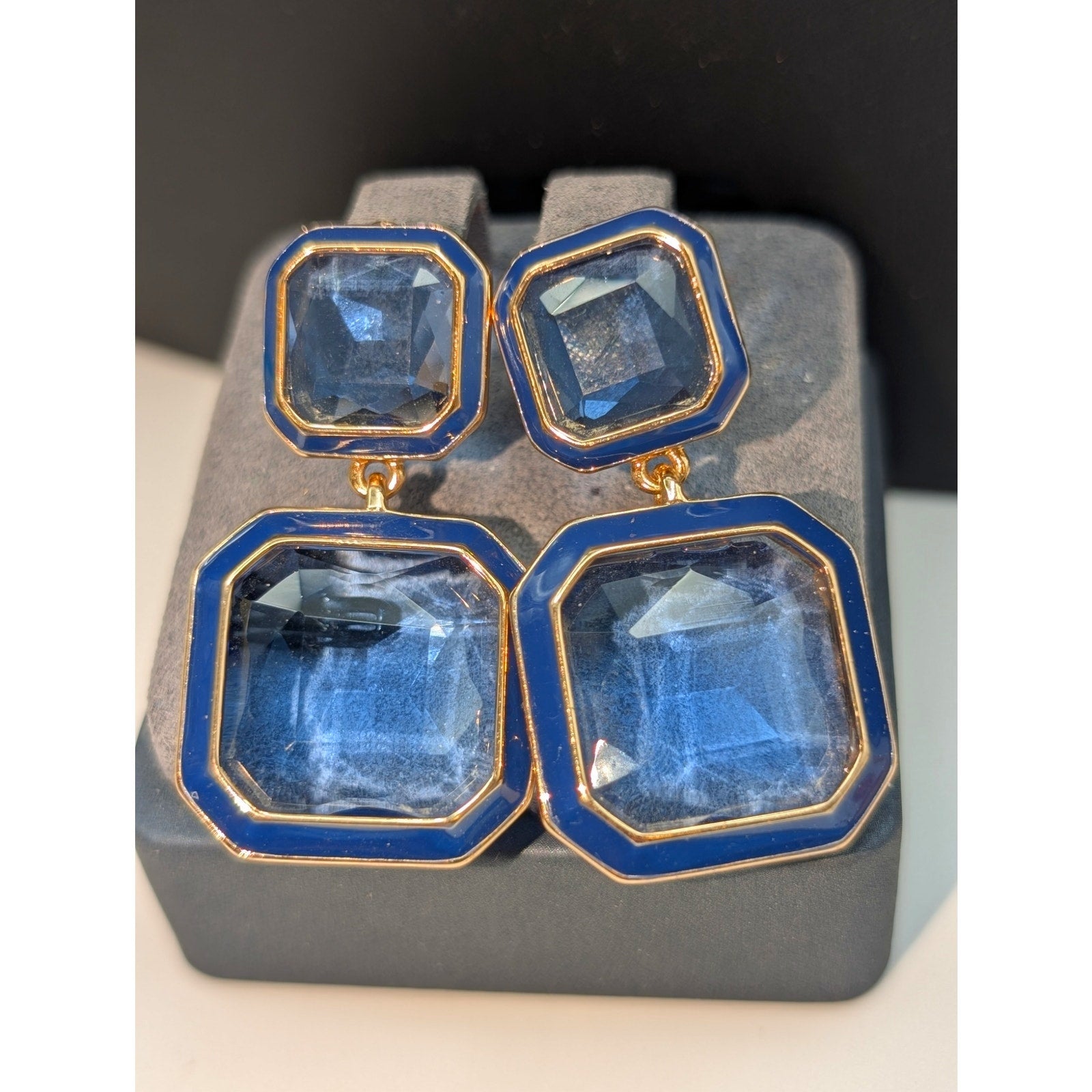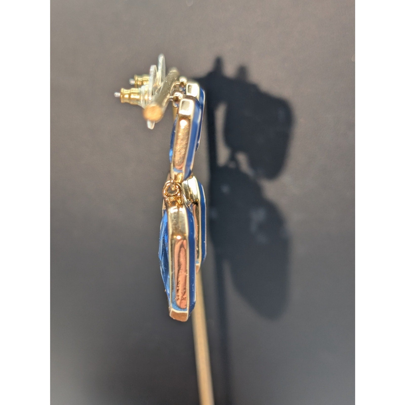 Blue Lagoon Glass Gold Tone Blue Enamel Drop Pierced Earrings. Pre-owned, these earrings are in excellent condition.