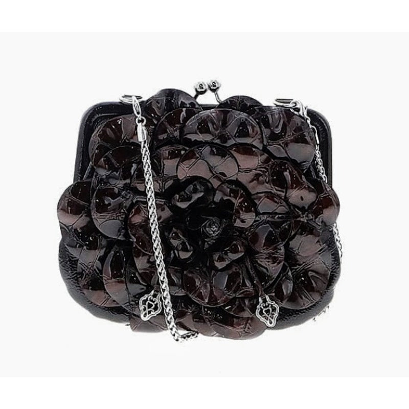 Brighton Roselie Shine Flower Kiss Lock Brown Leather Coin Purse Crossbody