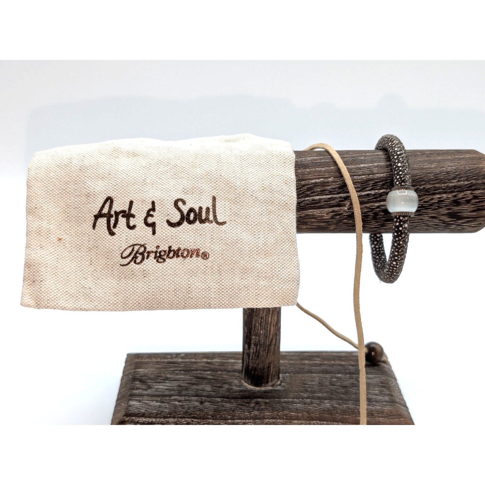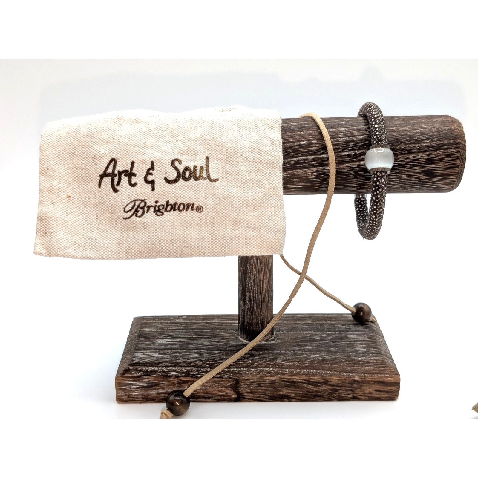 Brighton Woodstock Brown & White Speckled Cat's Eye Bead Magnetic Clasp Bracelet
