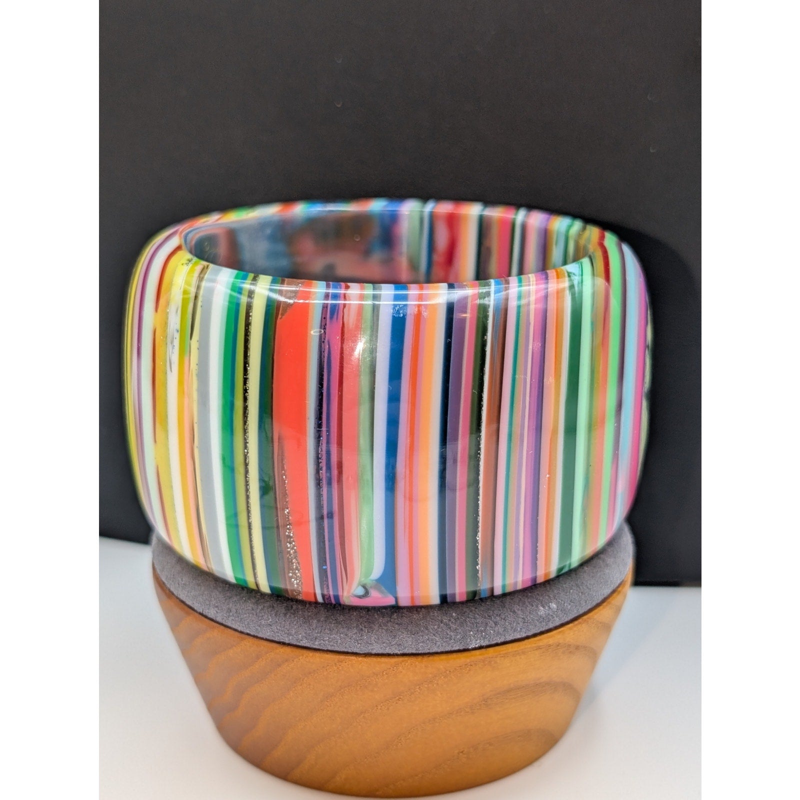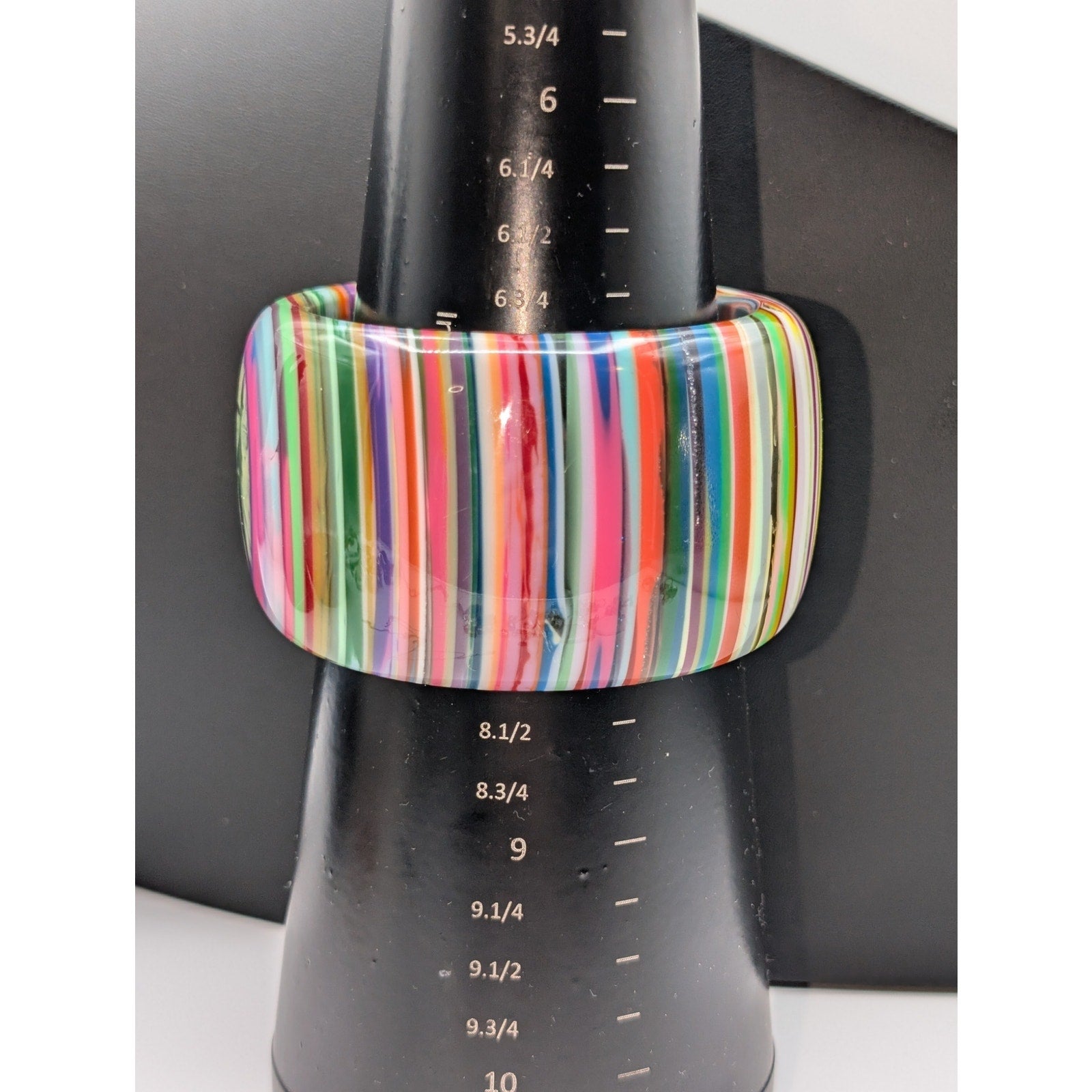 Carlos Sobral, Brazil, RARE! Signed Wide Rainbow Stripe Resin Bangle Bracelet