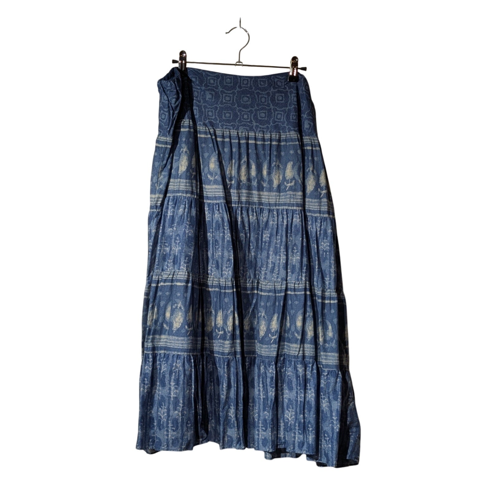 Chaps Boho Prairie Tiered Blue Cotton Shibori Tie Dye Pull On Midi Skirt Sz XL. Minimal elastic waist skirt. Lined. Pre-owned, this skirt is in excellent condition. Measures 32" long.