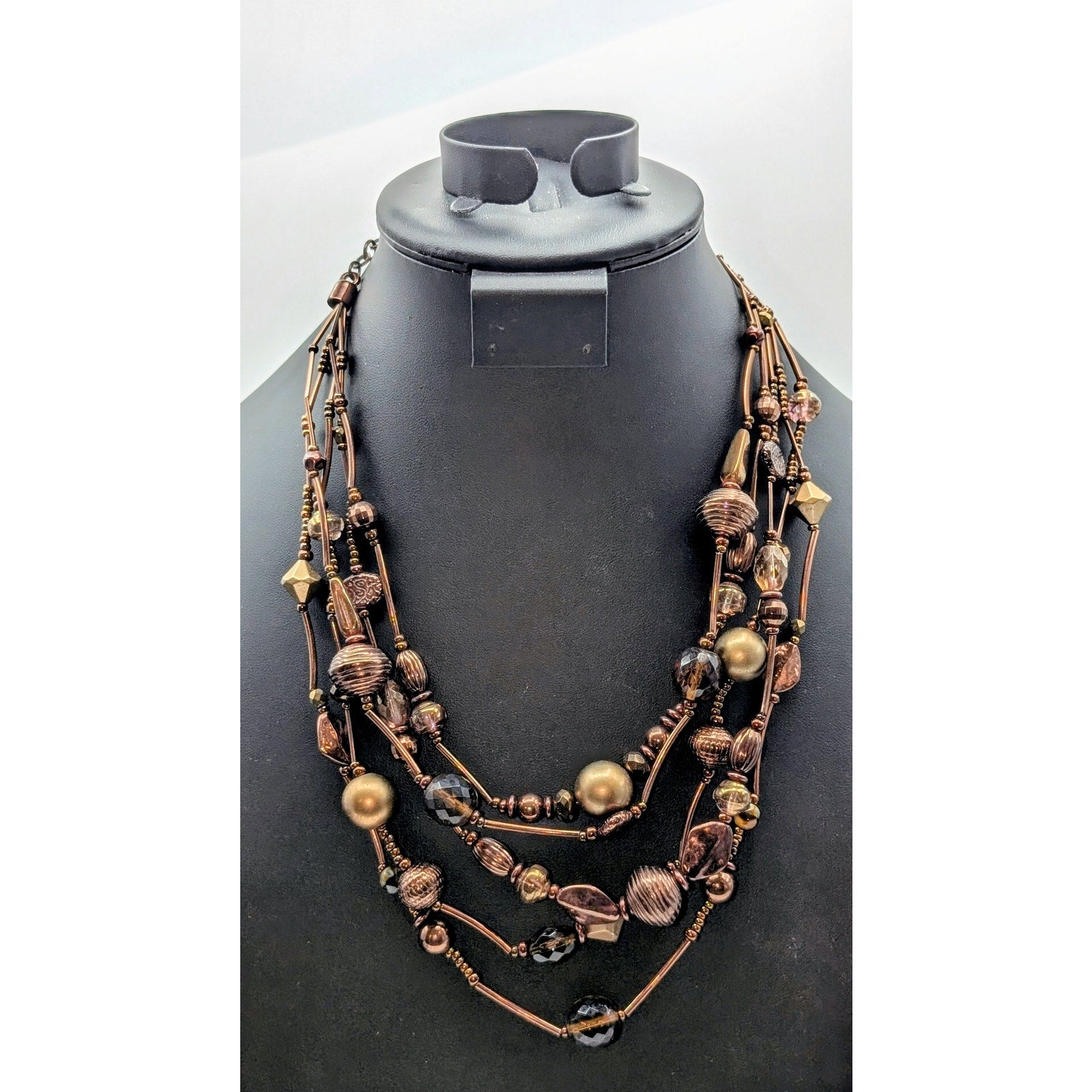 Chico's Five Strand Beaded Copper/Bronze Color 16.5"-20" Necklace. Pre-owned, this necklace is in excellent condition.