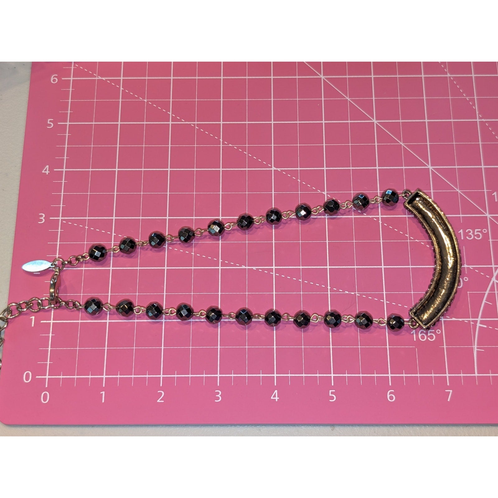 Chico's Metallic Rhinestone Gold Tone Crystal Beaded Necklace. Measures 16.5" with a 4" extender chain. Pre-owned, this necklace is in excellent condition.