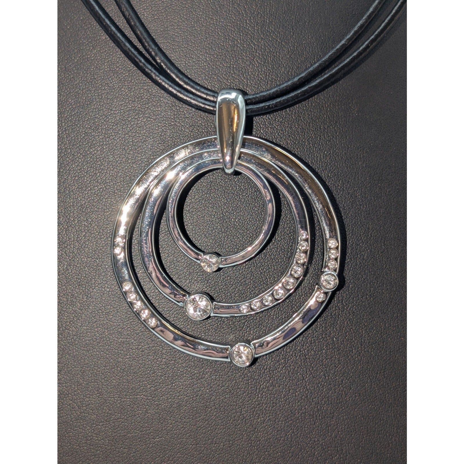 Chico's NWT Black Corded Hammered Silver Tone Rhinestone Circle Pendant 18.5"-22.5" Necklace. Pre-owned, this necklace is in NWT condition.
