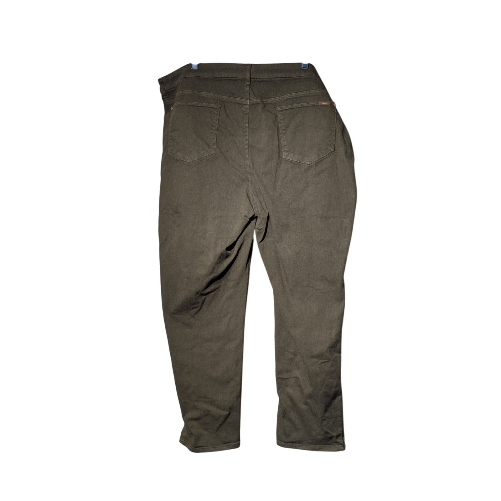 Chico's So Slimming Girlfriend Ankle Dark Olive Green Pant Chico's Size 4 (US XXL). Pre-owned, these pants are in great condition. The measurement photos are of waist, rise, inseam and pant leg opening, in that order. Minimal wear in the crotch.