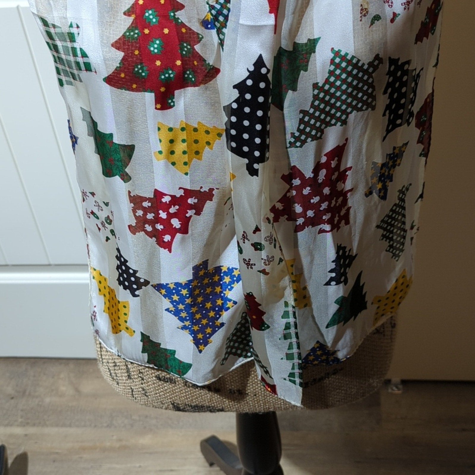 Christmas Holiday Patchwork Tree Design White 52" Long 10" Wide Rectangle Scarf. Just in time for the holidays. This scarf is just fun. Pre-owned, it is in excellent condition.