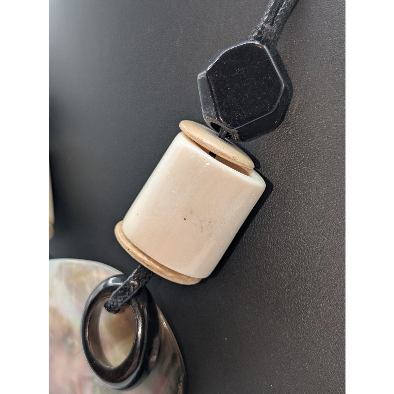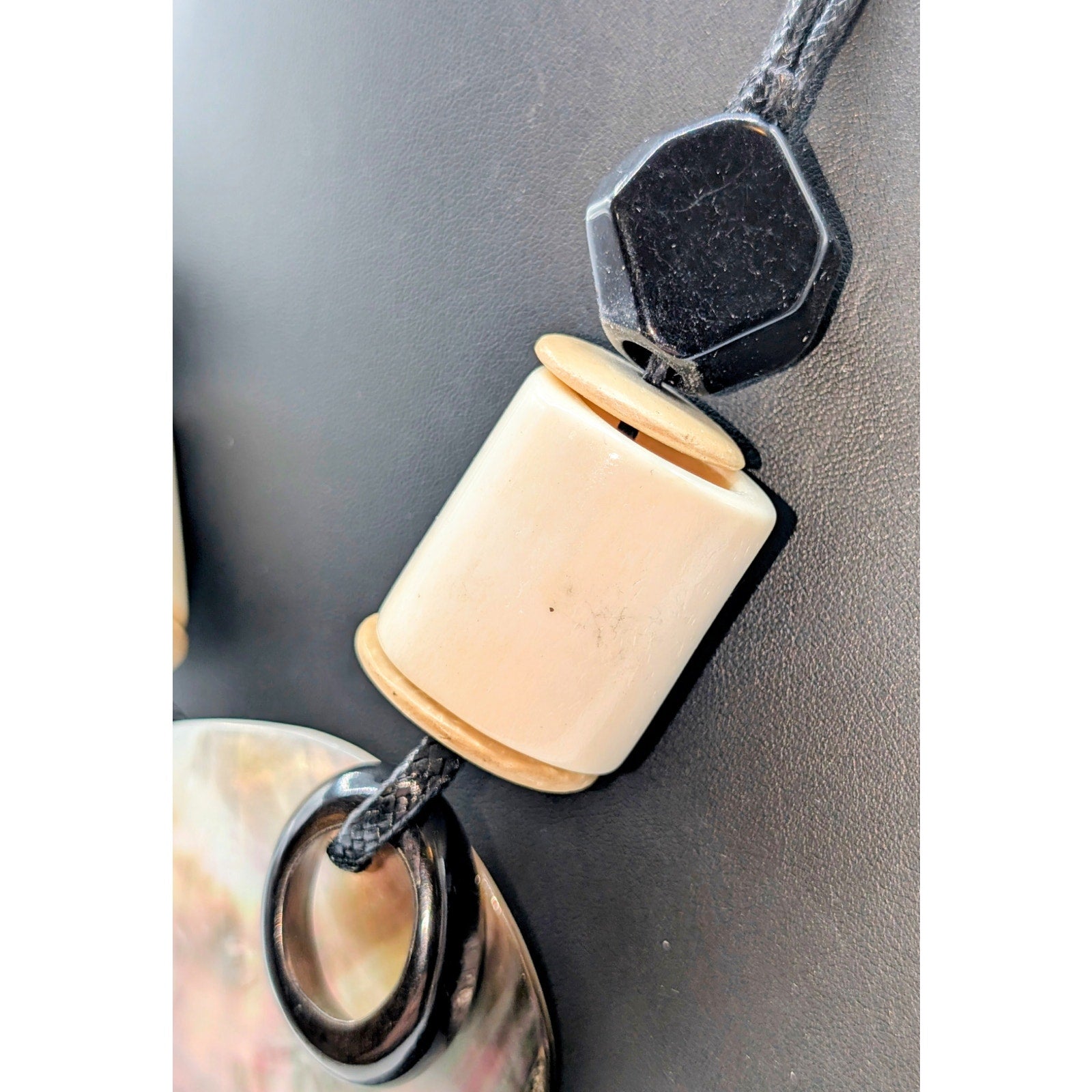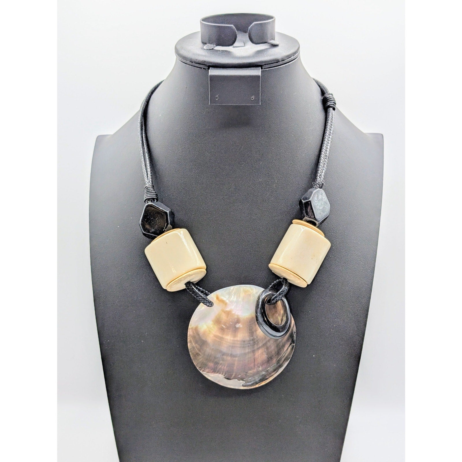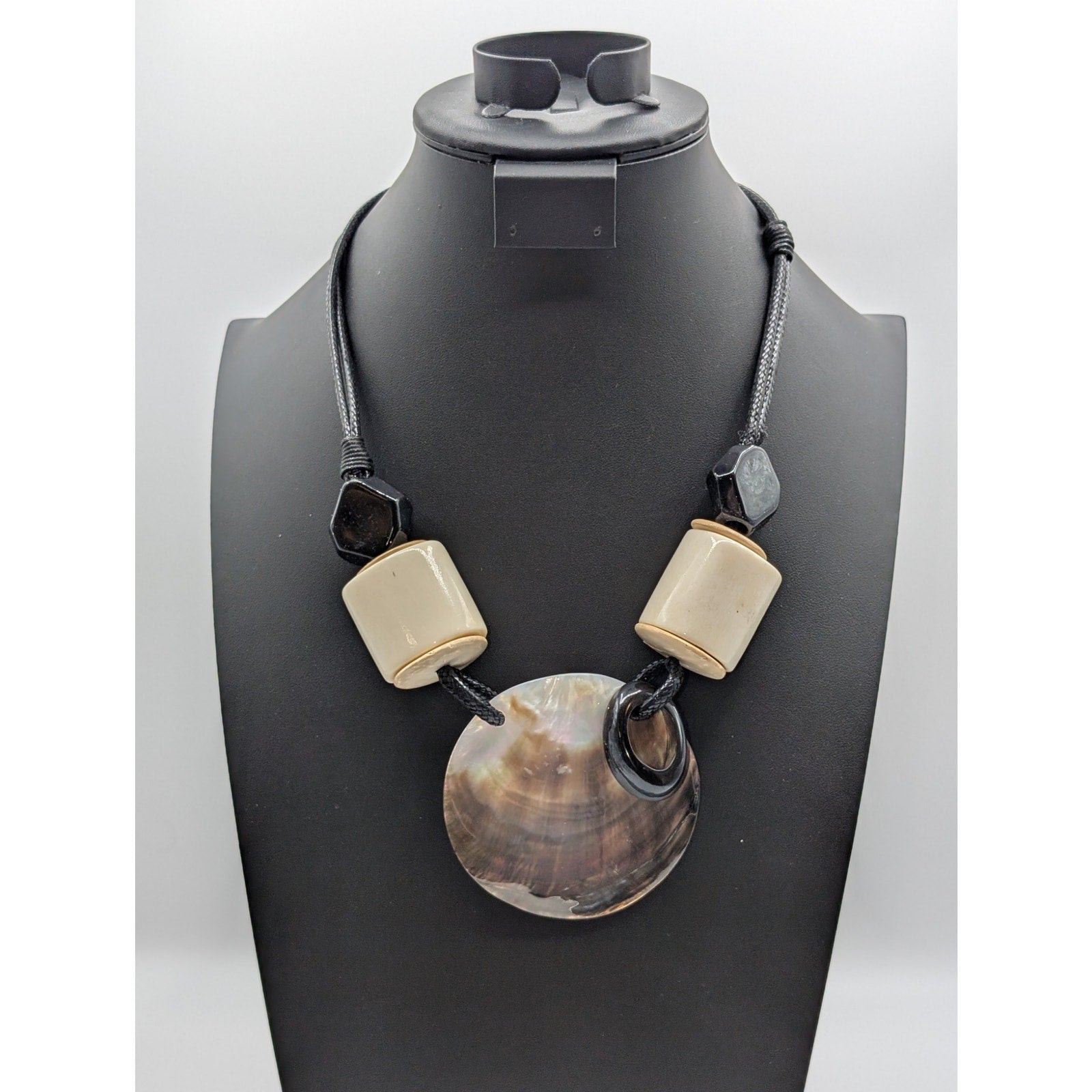 Chunky Barrel Bead Large Shell Pendant Avant Garde Corded 21.5"-24.5" Necklace. Pre-owned, this necklace is in great condition.