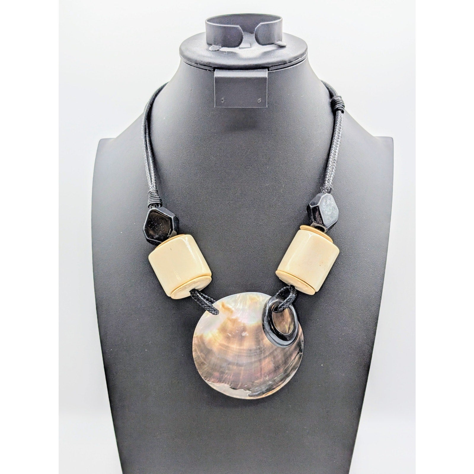 Chunky Barrel Bead Large Shell Pendant Avant Garde Corded 21.5"-24.5" Necklace