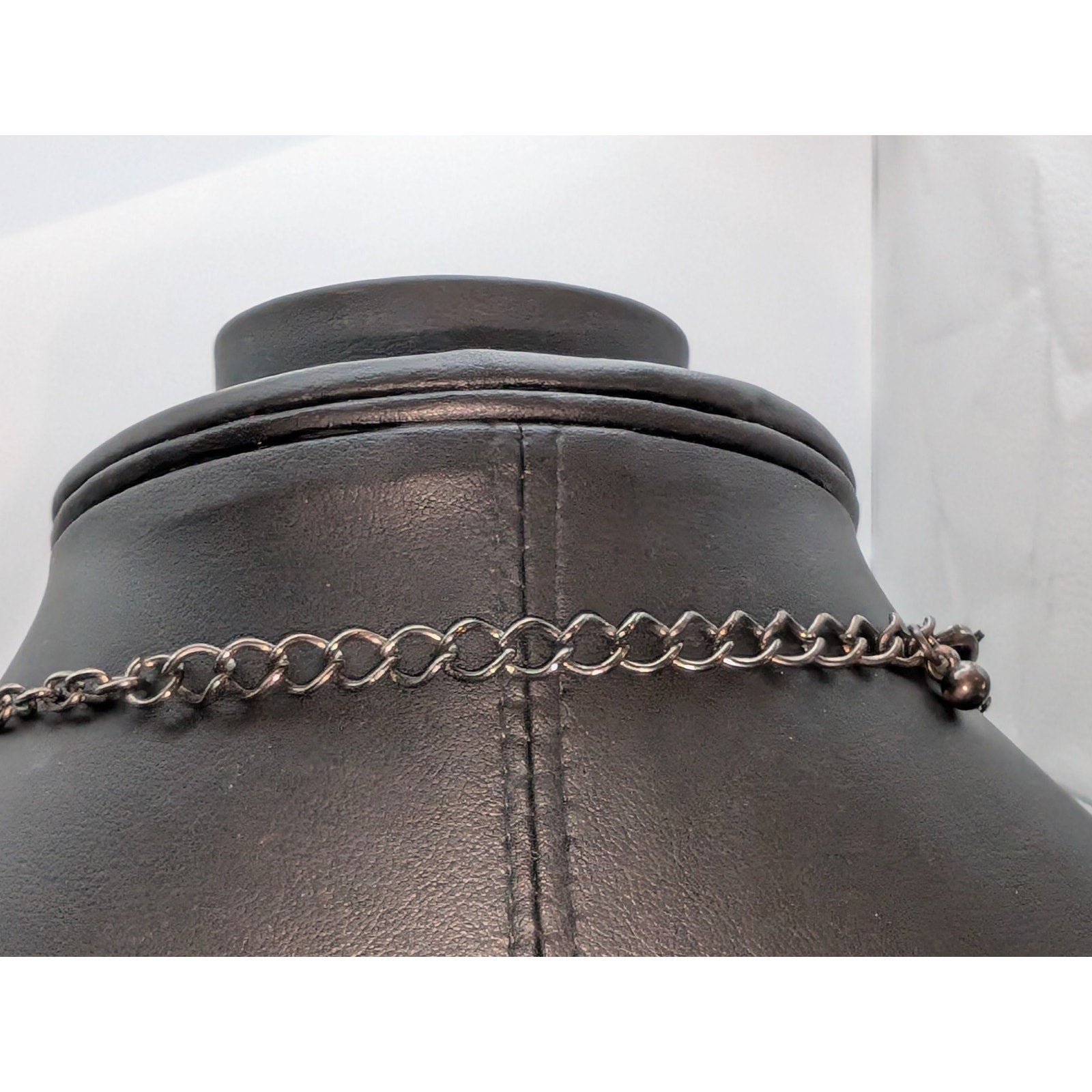 Chunky Geometrical Gun Metal Crackled Clear & Black Loopy Bead Chain 20"-23.5" Necklace. Pre-owned, this necklace is in great condition.