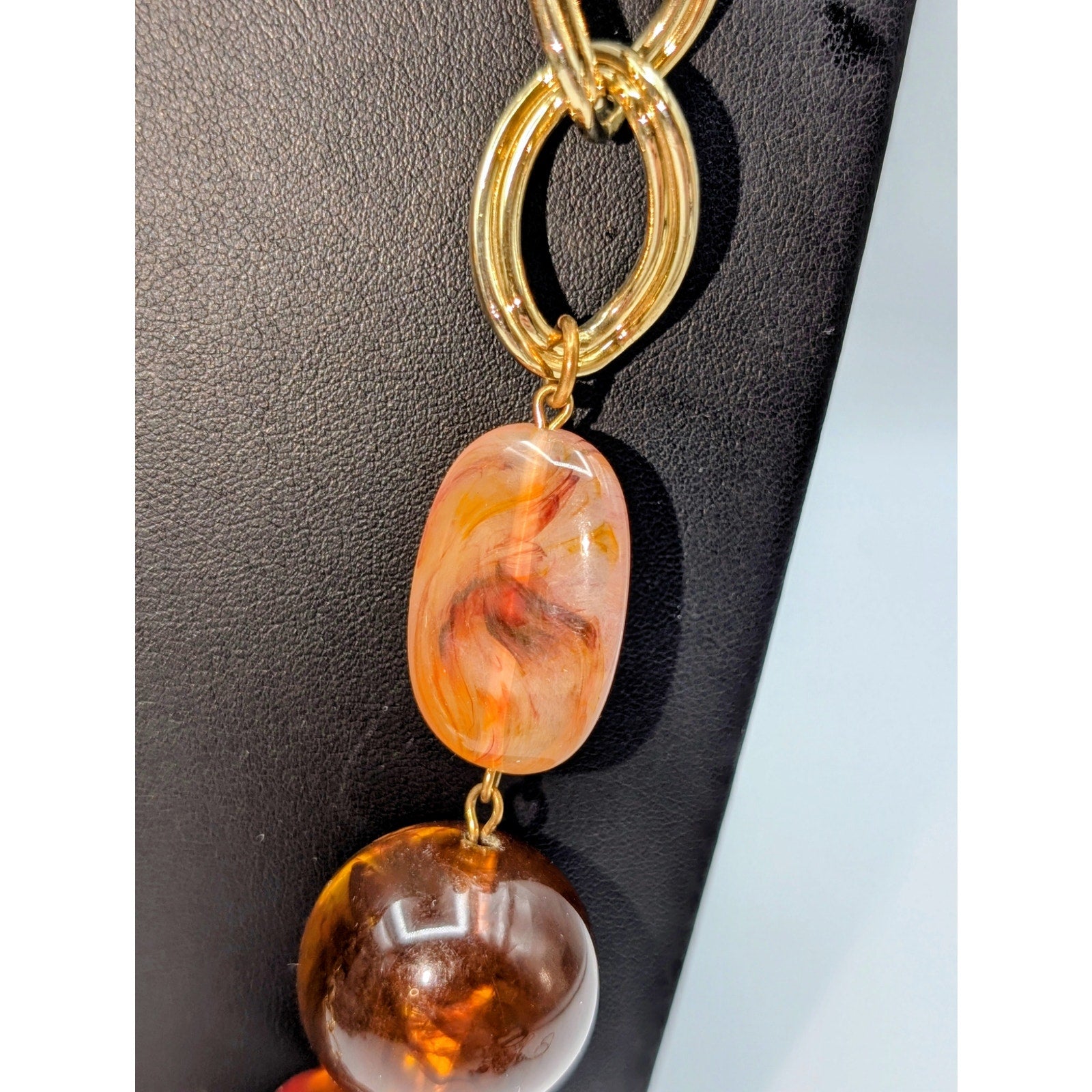 Chunky Gold Tone Chain Link Amber Acrylic Bead 34" Necklace