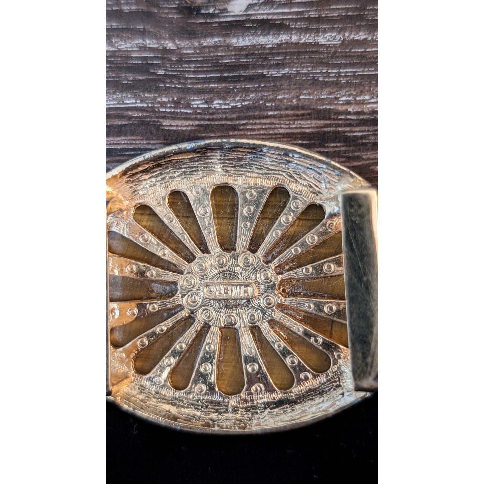 Ciner Vintage Oval Shaped Tiger Eye Gold Tone Scarf Buckle Clip