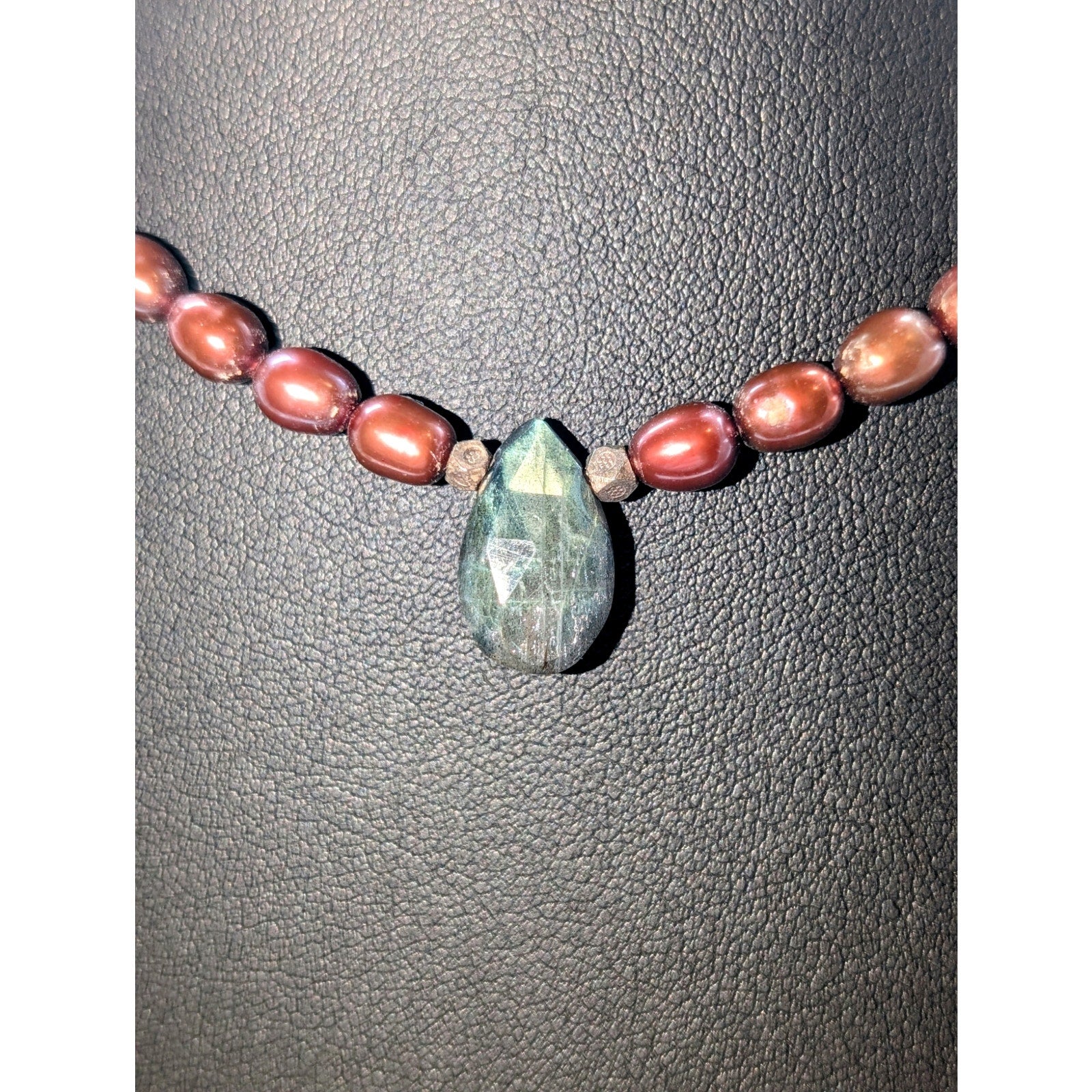 Copper Freshwater Pearl Labradorite Crystal Silver Toggle Clasp 16.25" Necklace. Pre-owned, this necklace is in excellent condition. Boho chic.
