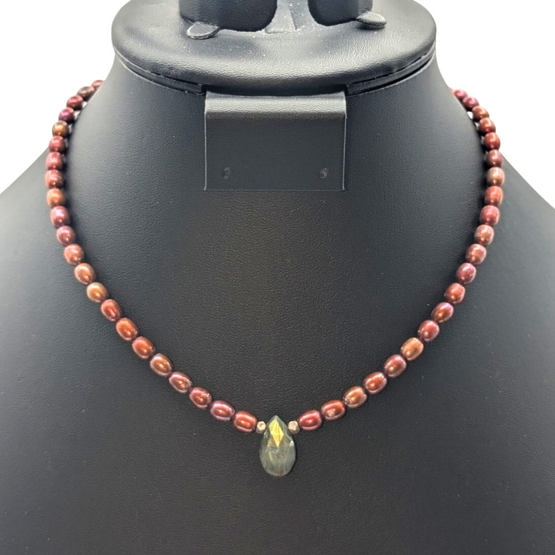 Copper Freshwater Pearl Labradorite Crystal Silver Toggle Clasp 16.25" Necklace