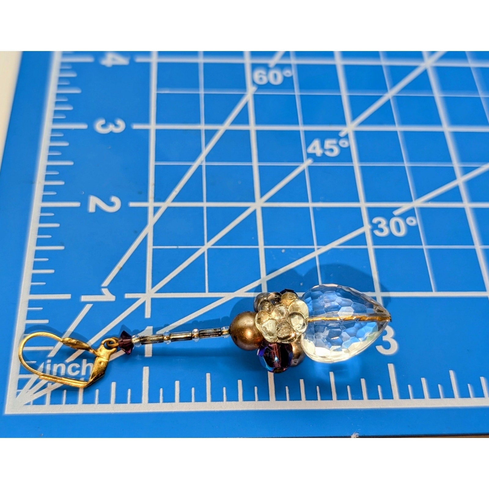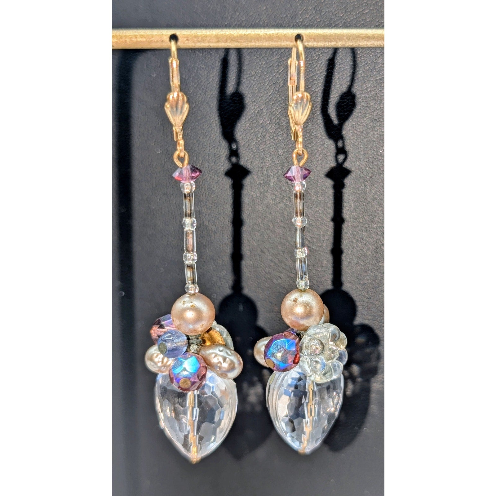 Crystal Faceted Heart Faux Pearl Crystal Flower Beaded Gold Tone Lever Back Dangle Earrings. Artisan made. Pre-owned, these earrings are in great condition. Top pearls have a little bit of discoloration spots. Often, my photos are enlarged to show detail so look at the measurement board for accurate size. Photos are part of the description.