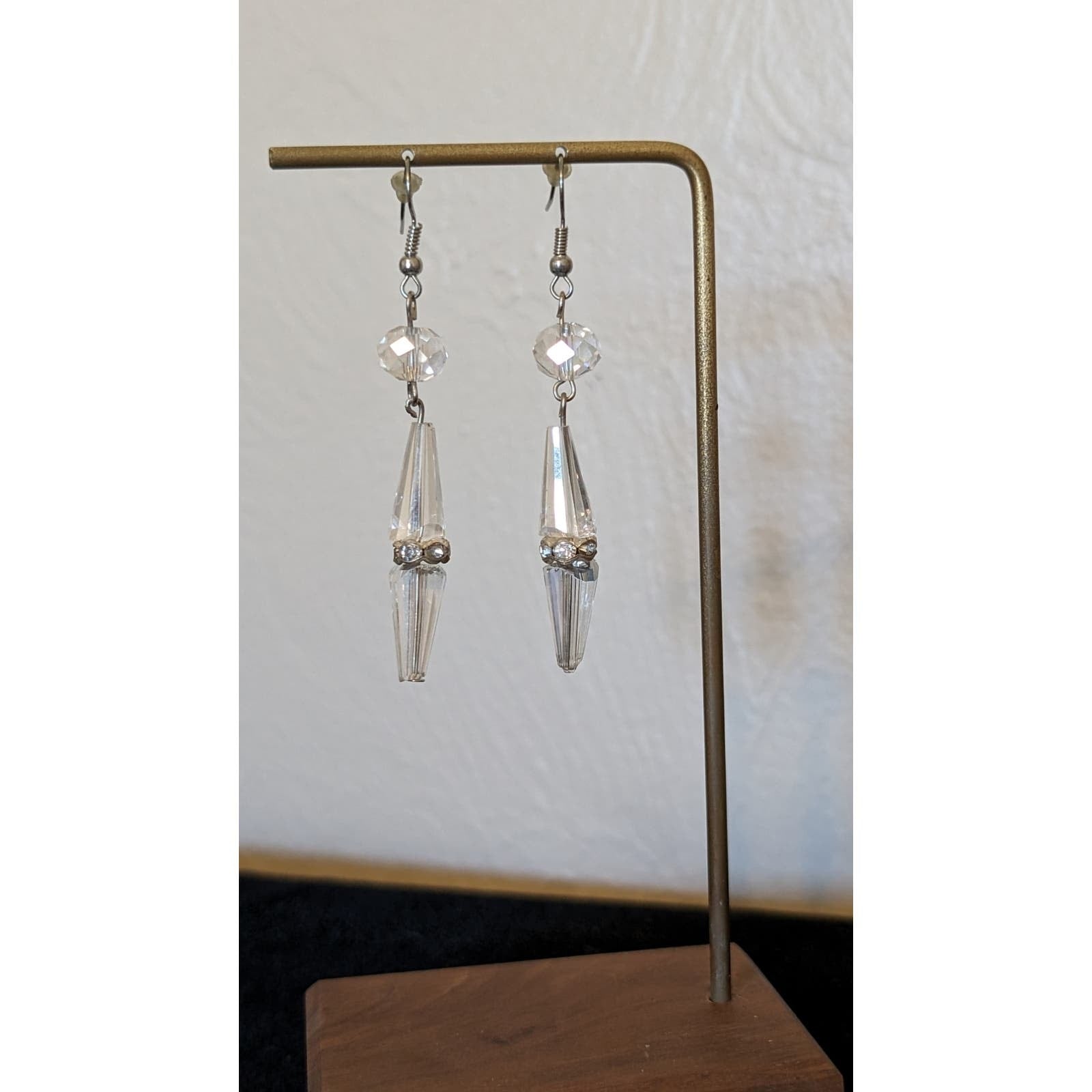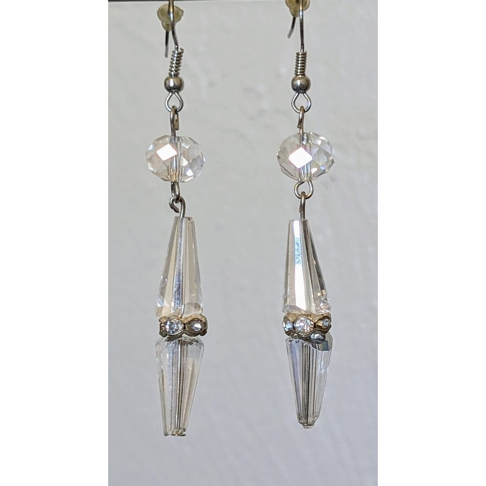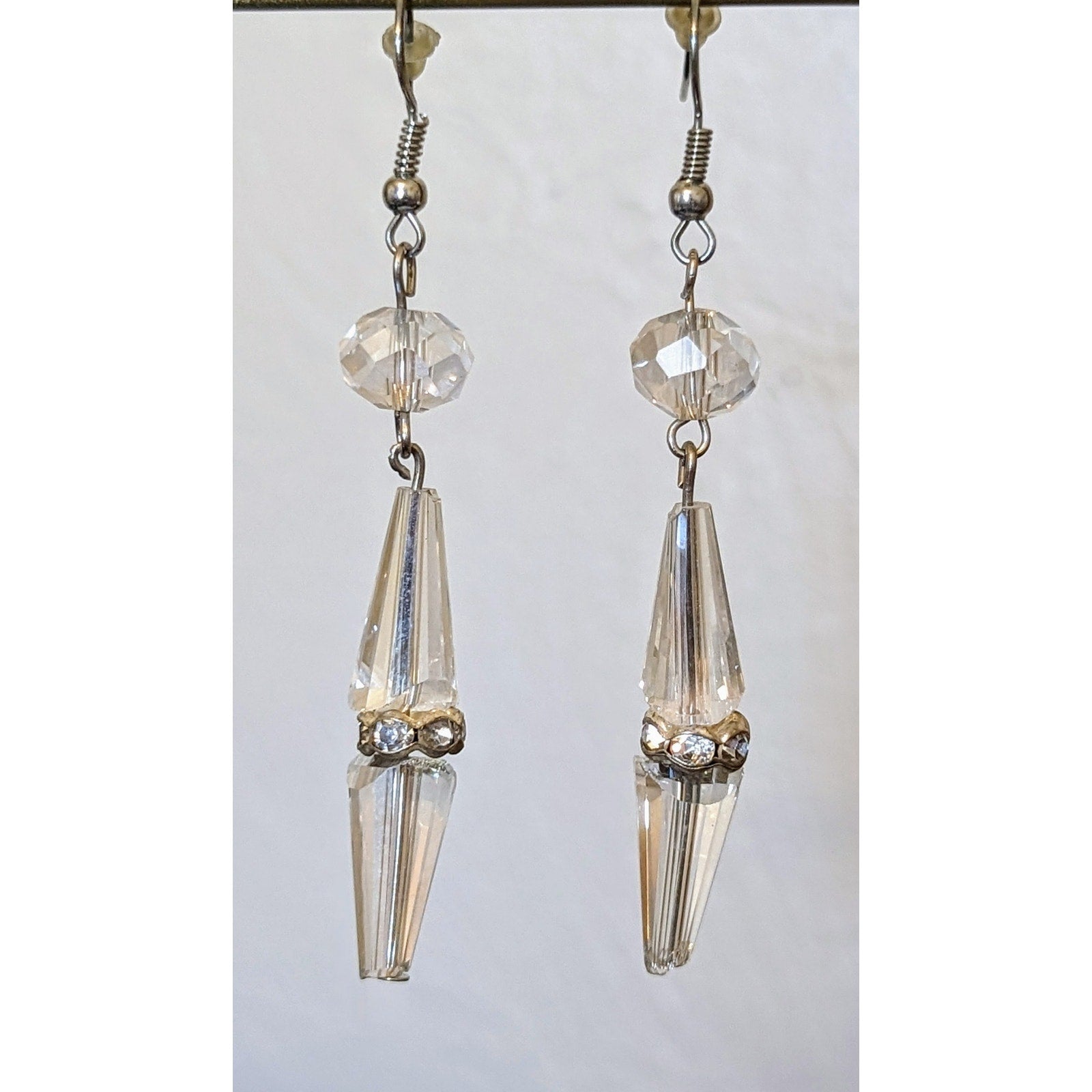 Cut Crystal Rhinestone Rondelle Bead French Wire Dangle Earrings. Pre-owned, these earrings are in excellent condition. Measure 2.5" long.