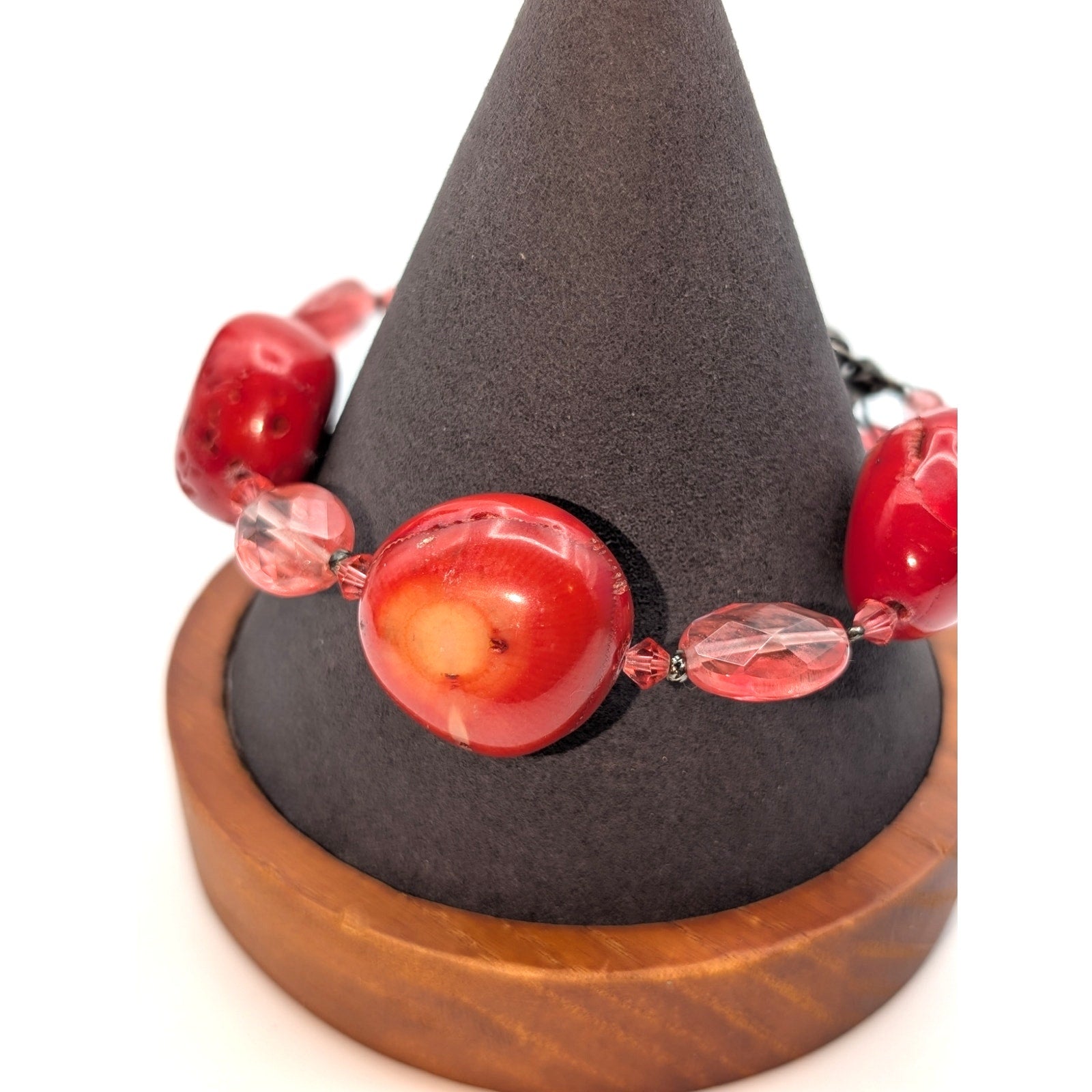Dabby Reid Chunky Four Piece Coral & Faceted Crystal Bead Bracelet. Pre-owned, this bracelet is in good condition. One of the coral beads is rough. See the last two photos.