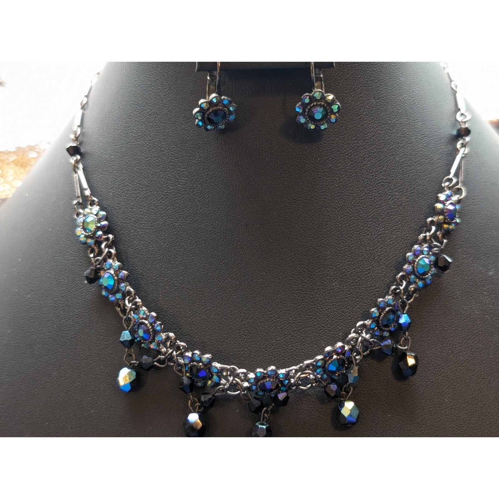 Dark Blue AB Crystal Gun Metal 11"-15.5" Necklace and Lever Back Earring Set. Pre-owned, this necklace and earring set is in excellent condition. So pretty.