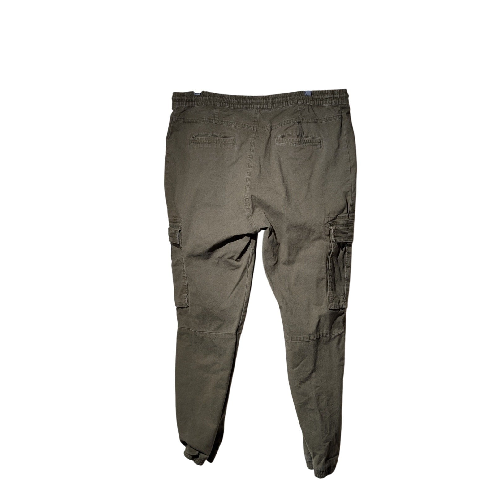 Denim Co. Cuffed Cargo Olive Green Elastic Drawstring Waist Canvas Jean Size XL
