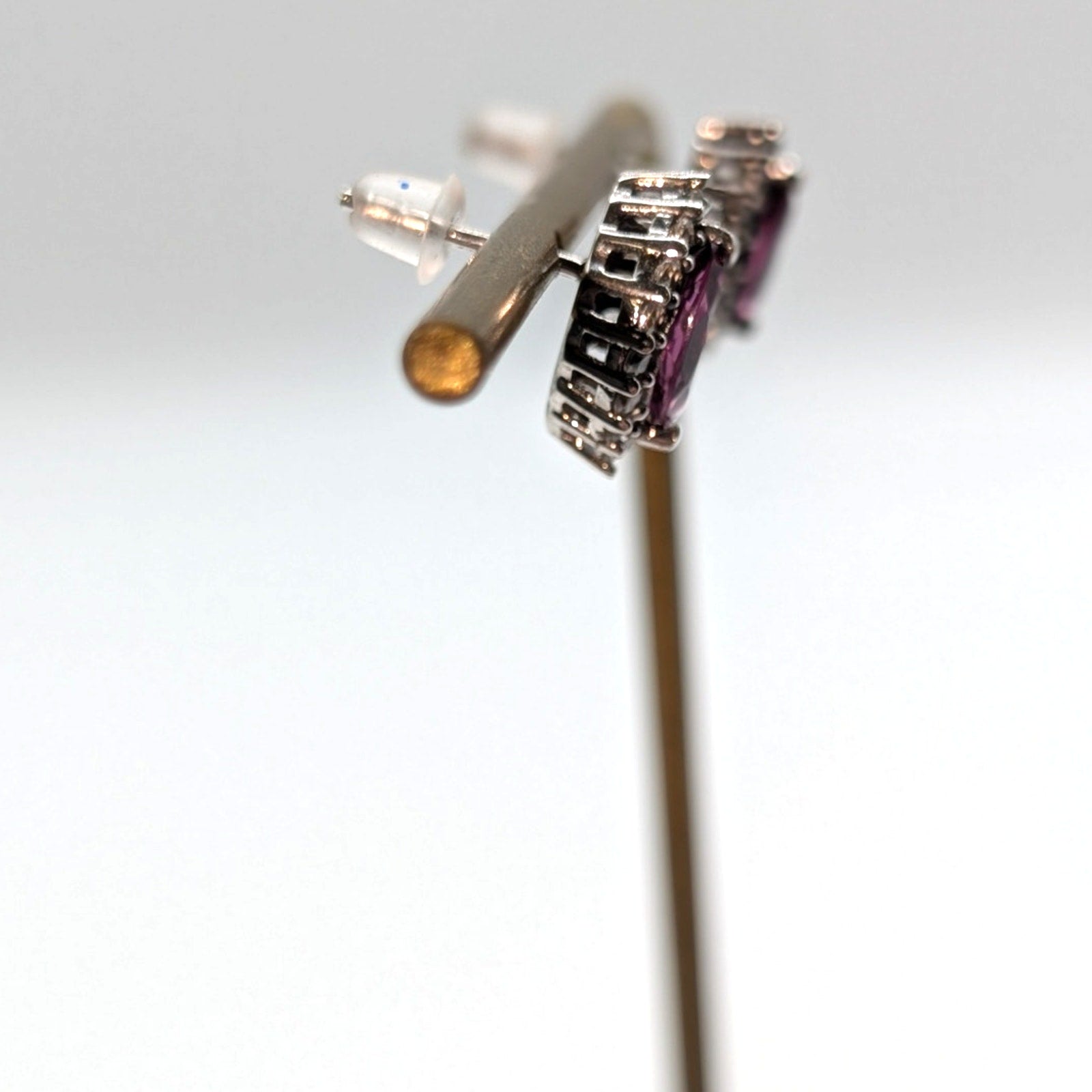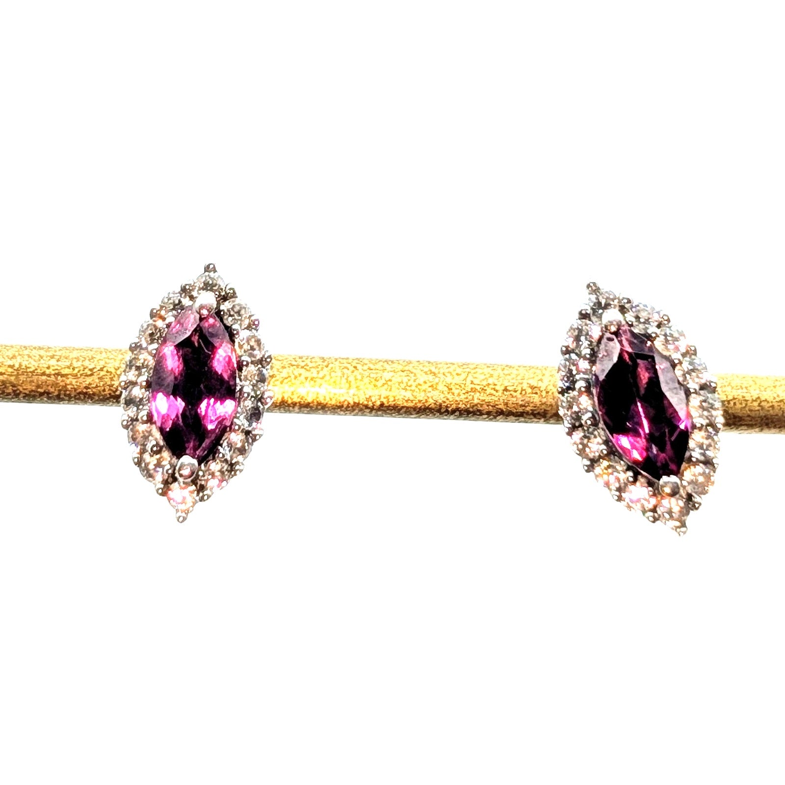 D'Joy 925 Sterling Silver Marquis Amethyst White Spinel Surround Stud Earrings. Pre-owned, these earrings are in great condition.