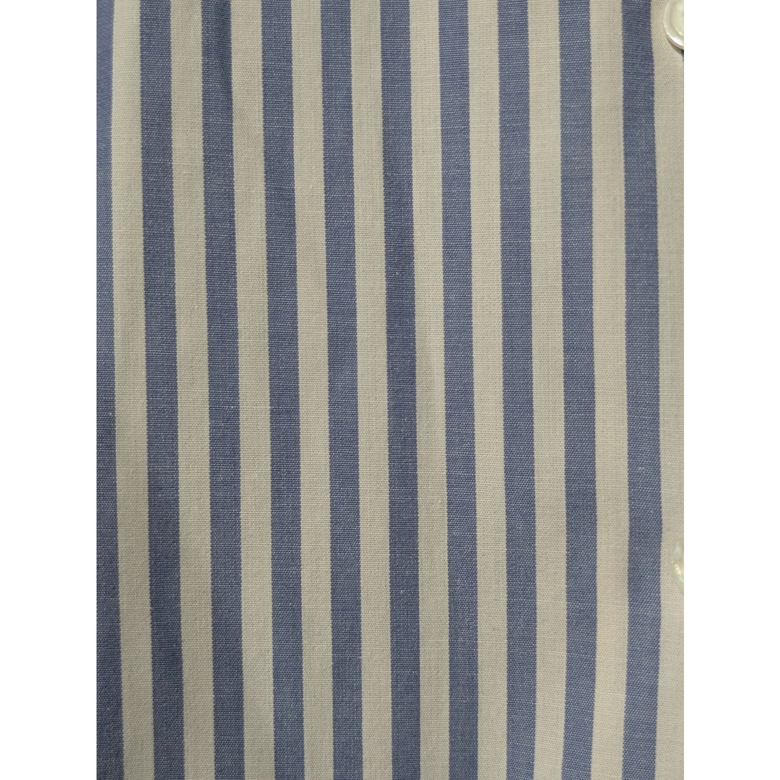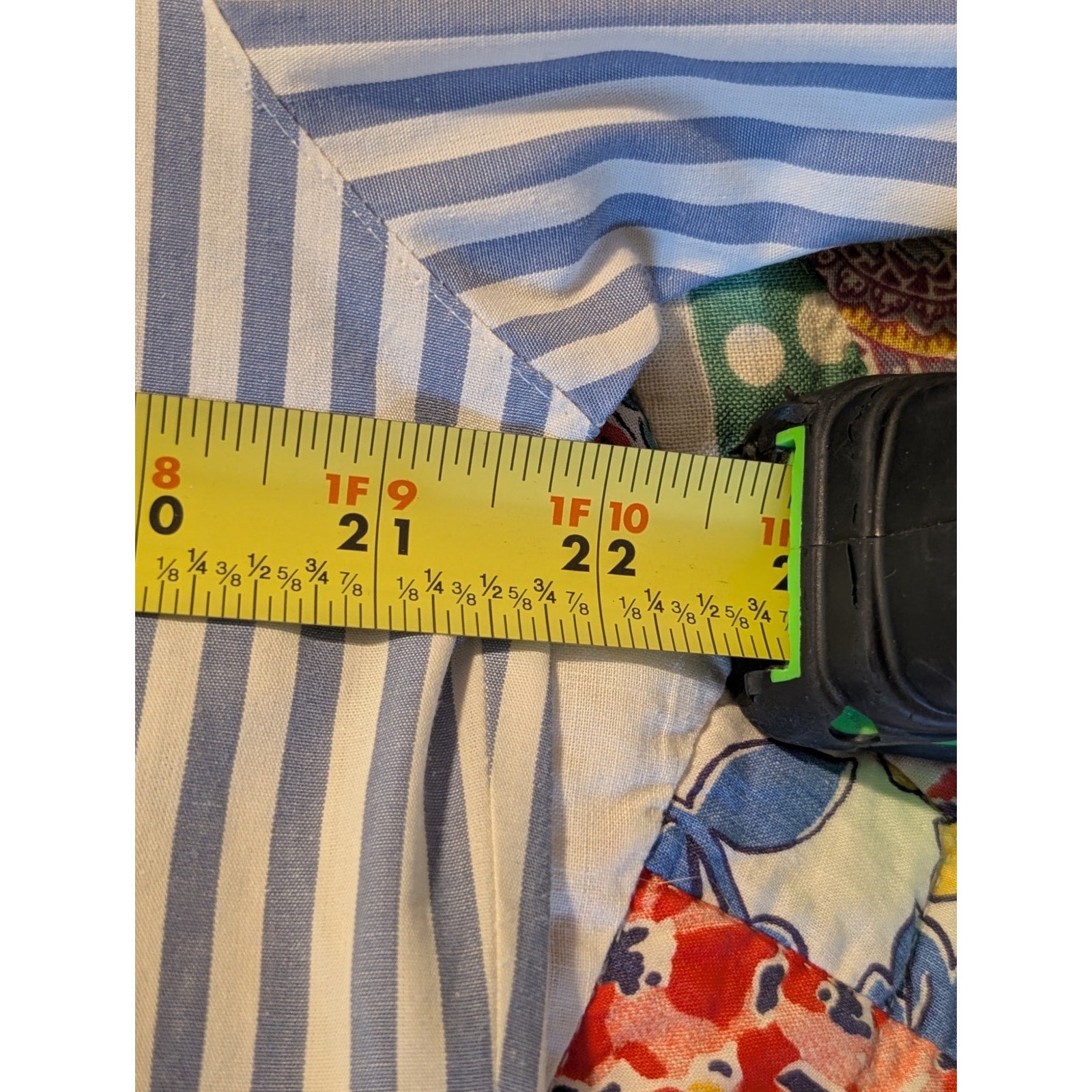Docker's Dusty Blue Striped 100% Cotton Button Up Shirt Ladies' Sz M. IMO the perfect striped shirt. Soft and so well made. Curved hem. Pre-owned, this shirt has been dry cleaned and is in excellent condition. Classic, preppy.