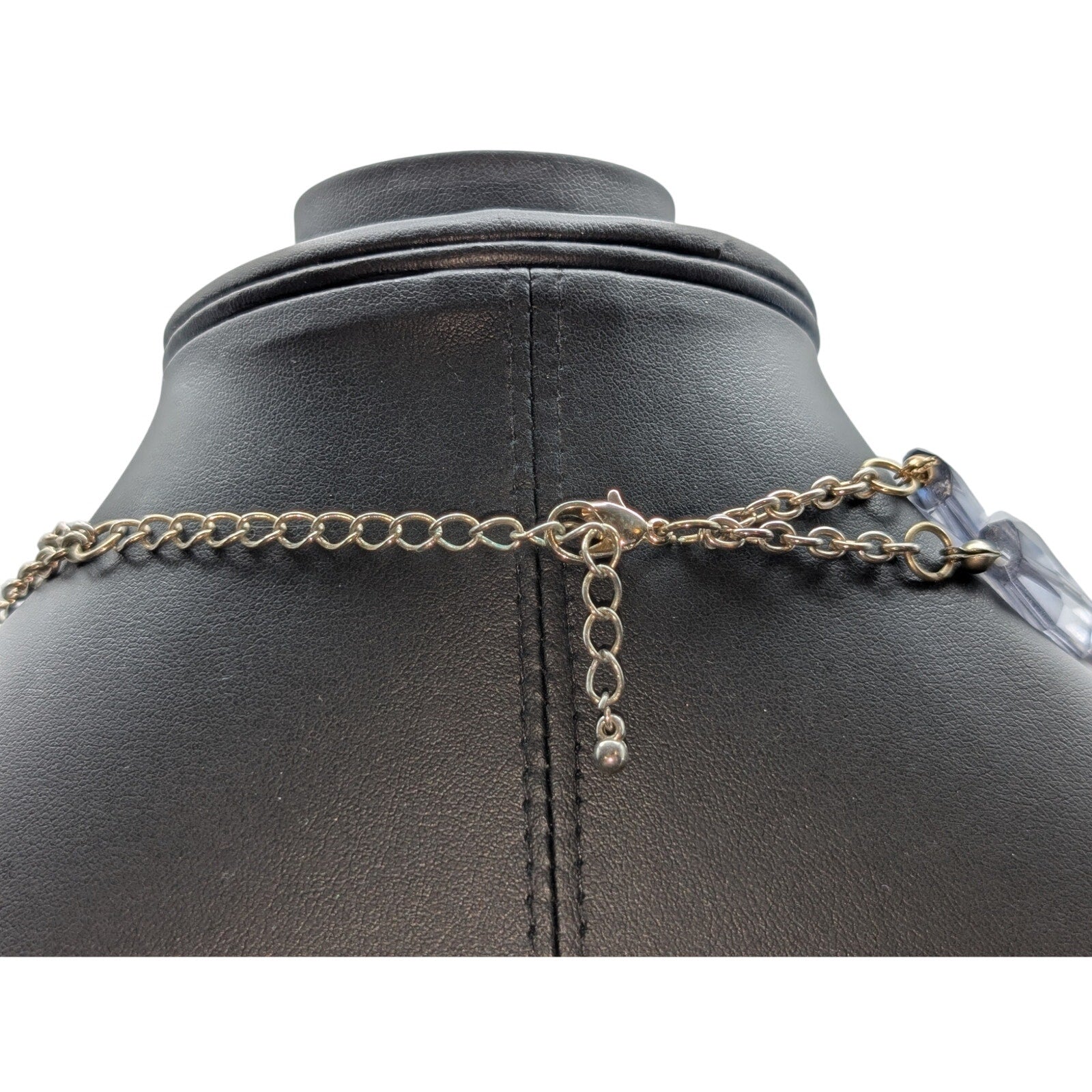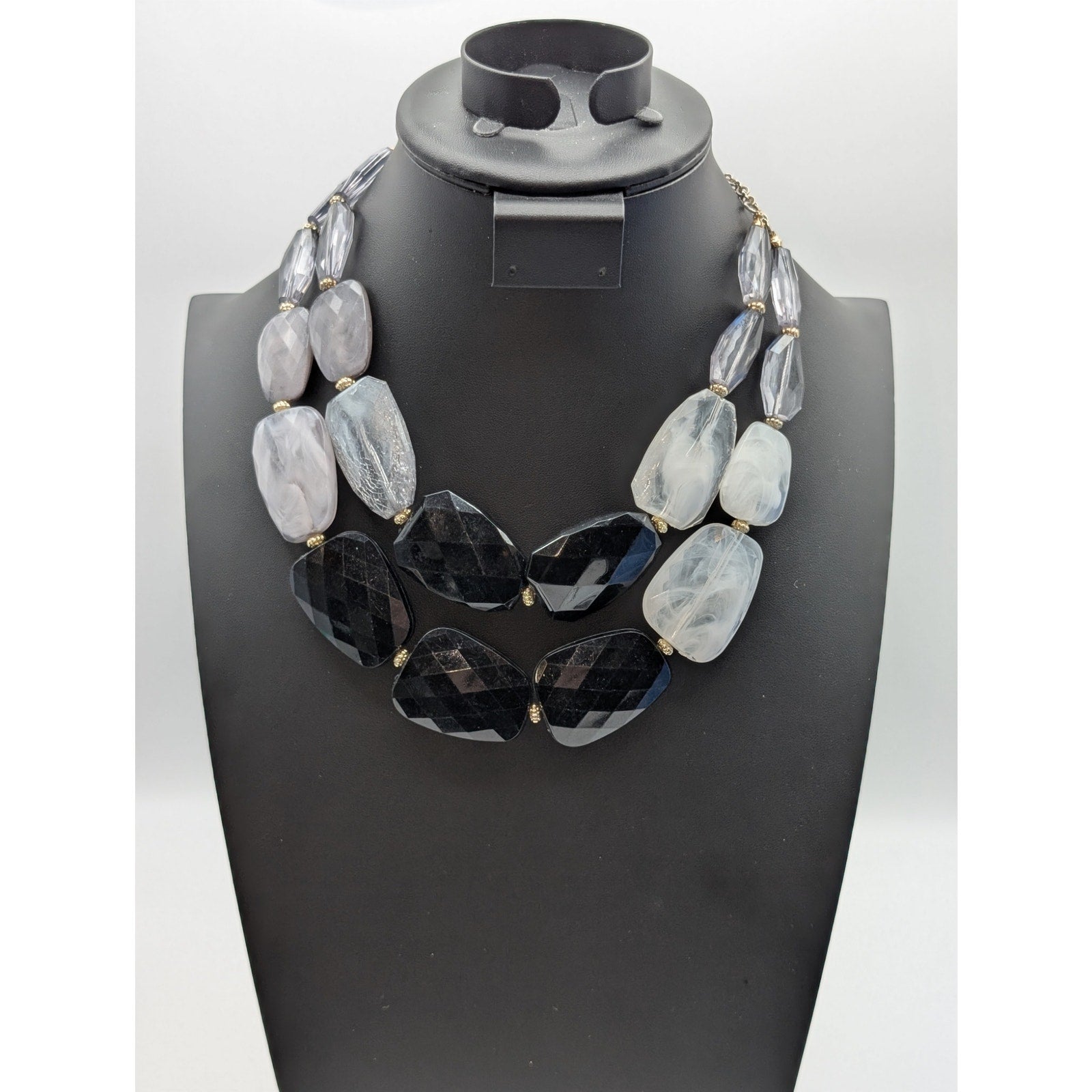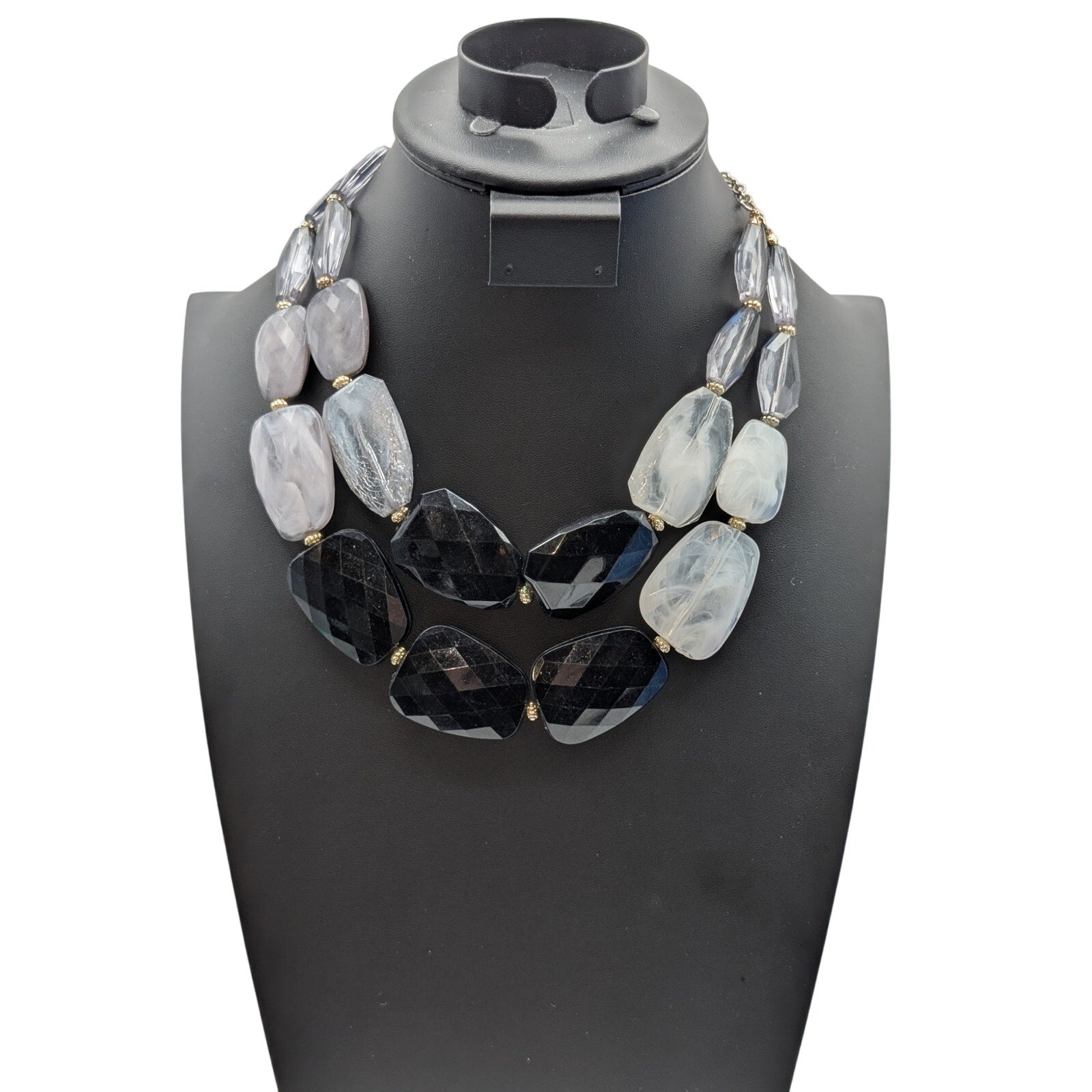 Double Strand Chunky Large Faceted Black Gray White Acrylic Bead 16"-19" Necklace. Pre-owned, this necklace is in excellent condition.