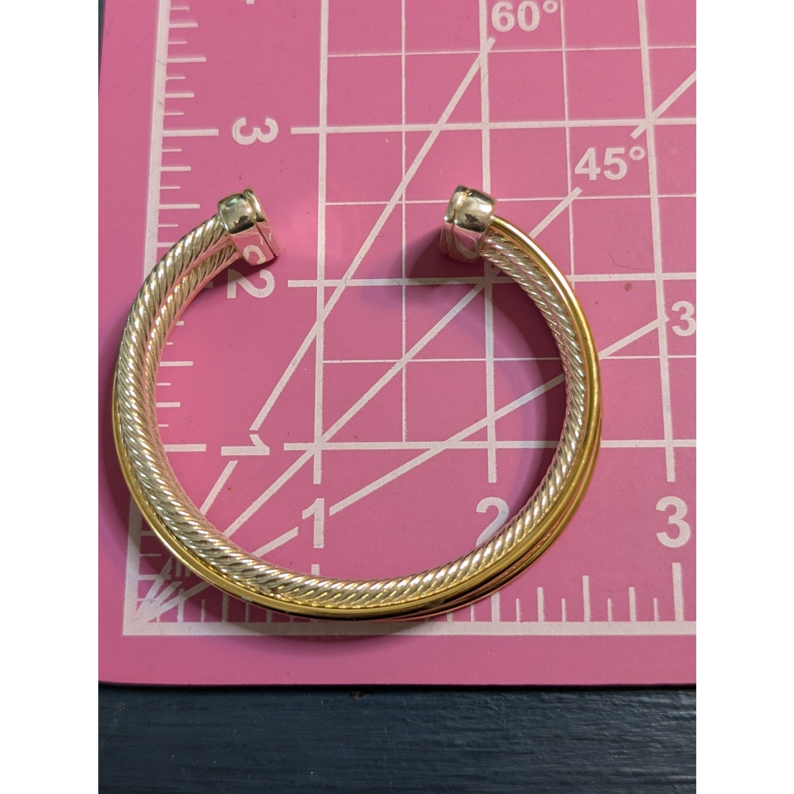 Double Two Tone Gold Bar Silver Rope Cuff Bracelet. Pre-owned, this cuff bracelet is in excellent condition. No markings.