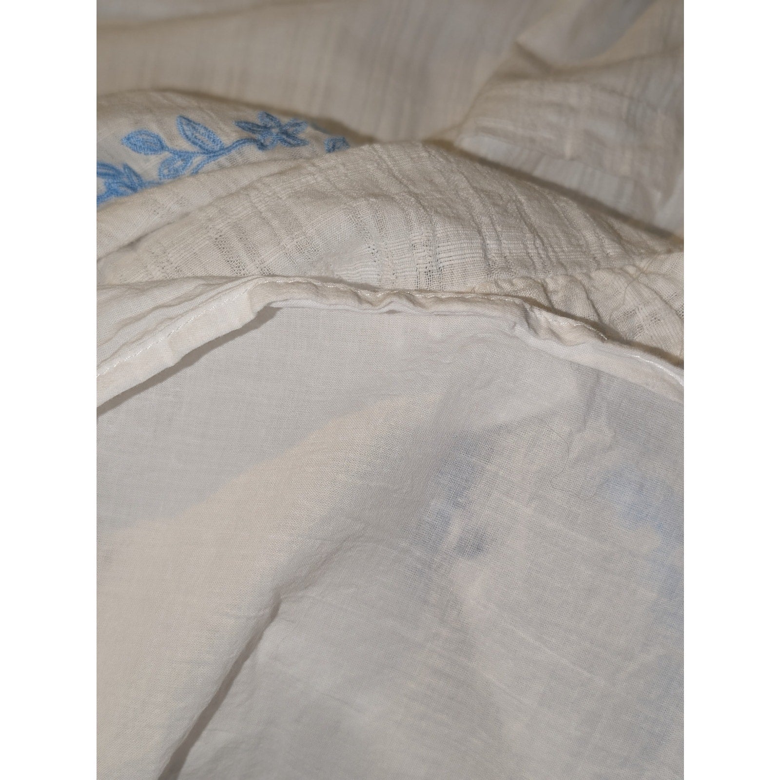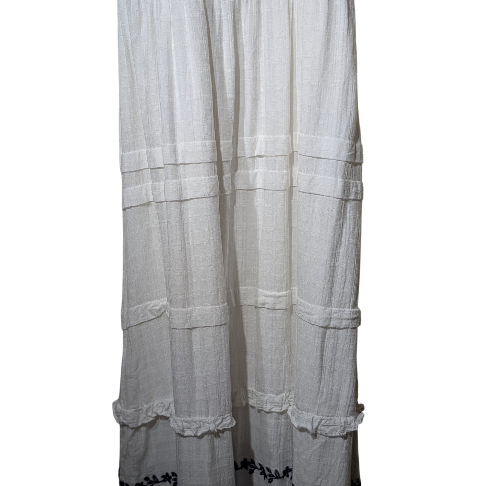 Draper James RSVP White Blue Embroidered Smocked Bodice Tiered Maxi Dress Size XL. Tiered hem with embroidered details. Lined. Pull on design. 54" approximate length from shoulder to hem. Cotton. Lining: Cotton. Machine wash on delicate. Pre-owned, this dress is in excellent condition. Doesn't look like it was worn.