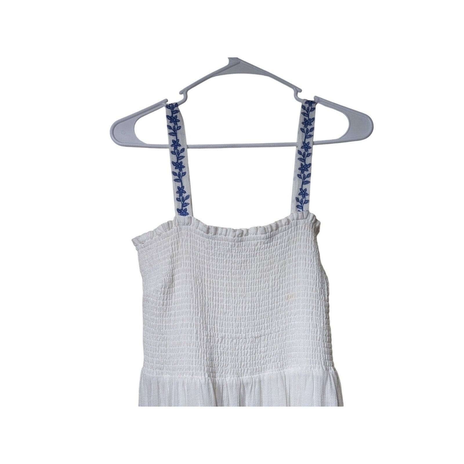 Draper James RSVP White Blue Embroidered Smocked Bodice Tiered Maxi Dress Sz XL