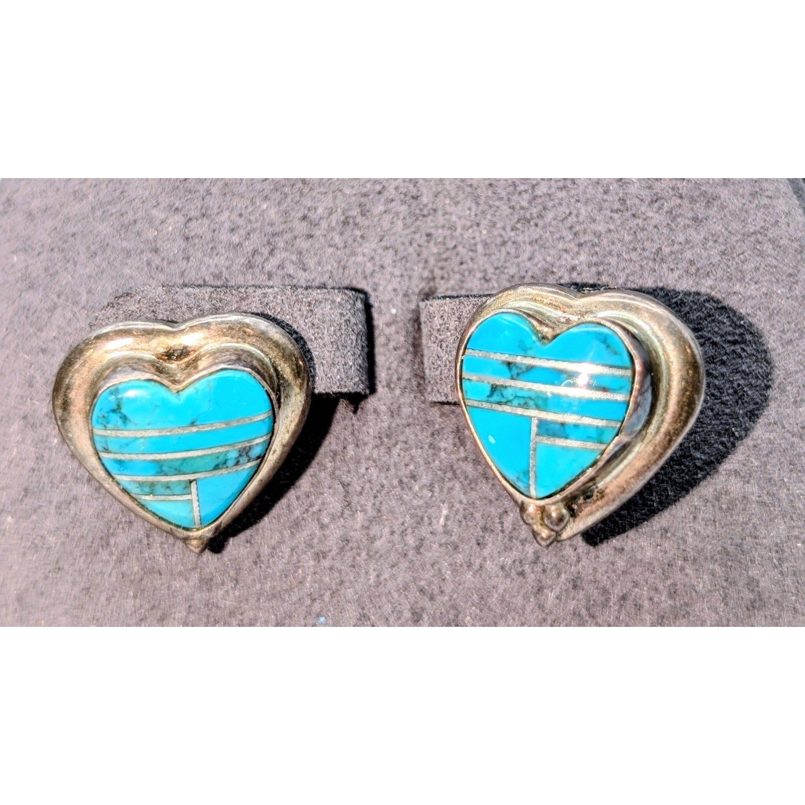 DTR Jay King Mine Finds Sterling Silver Inlaid Turquoise Heart Post Earrings 4.96g. Pre-owned, these earrings are in excellent condition.
