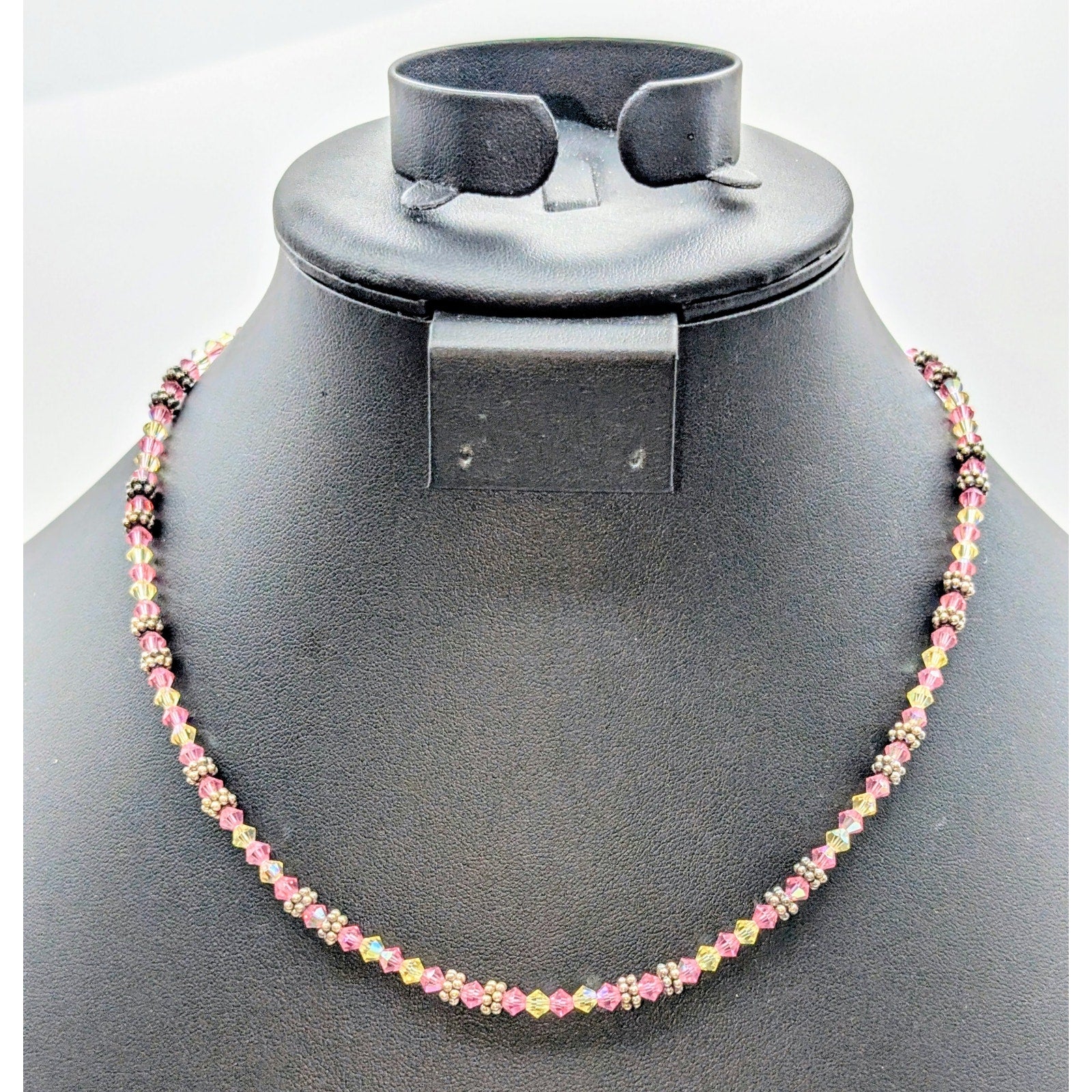 Elise Ryan 925 Sterling Silver Pink Clear Bicone Crystal Bead 18" Necklace