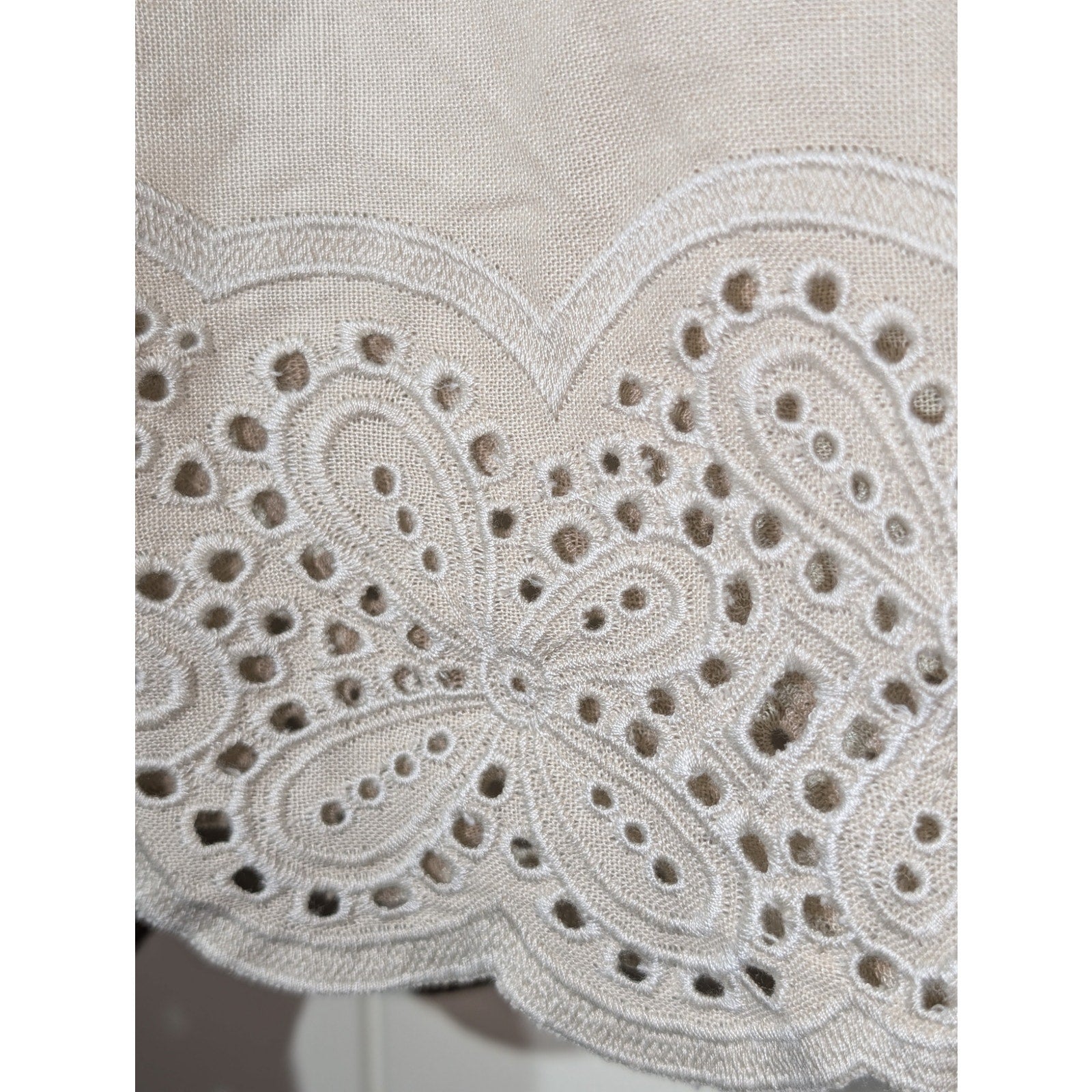 Ellen Tracy Ecru Linen Blend Smocked Back Lace Hem & Sleeve Trimmed V-Neck Crop Top Women's Sz. L So soft and a dream to wear is this well made, stylish feminine crop top. Perfect to wear with high rise jeans or pants. Pre-owned, this top is in excellent condition.