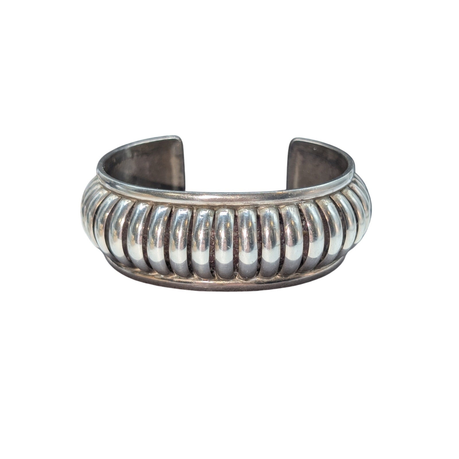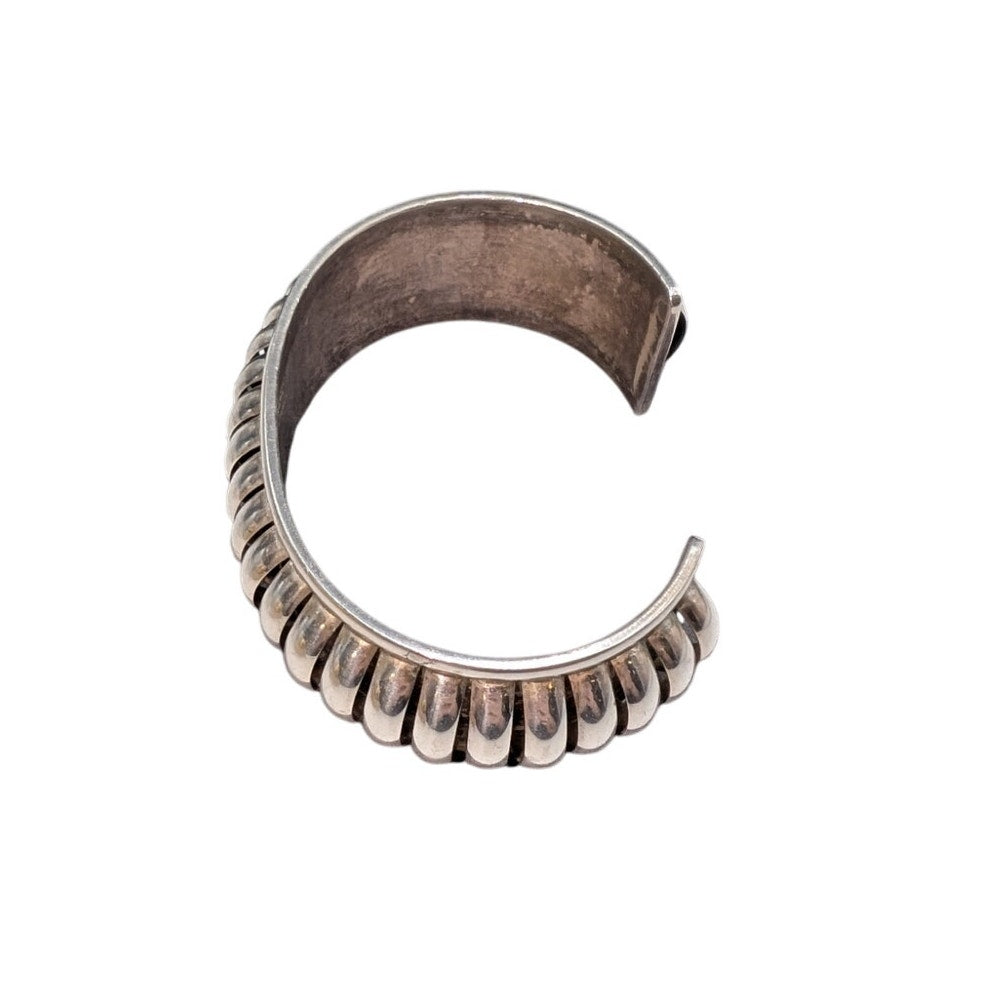 Emma Lincoln Signed 925 Sterling Silver Ridged Cuff 1-1/16" Wide Bracelet