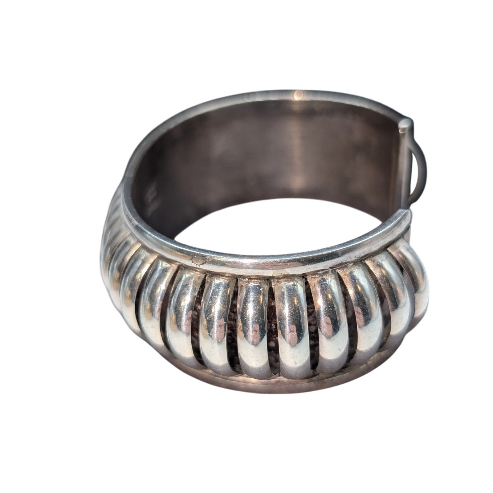 Emma Lincoln Signed 925 Sterling Silver Ridged Cuff 1-1/16" Wide Bracelet. Pre-owned, this bracelet is in excellent condition. Inside diameter is 6" with a 1-1/4" opening. No lowball offers, please. Very unique, well-made piece.