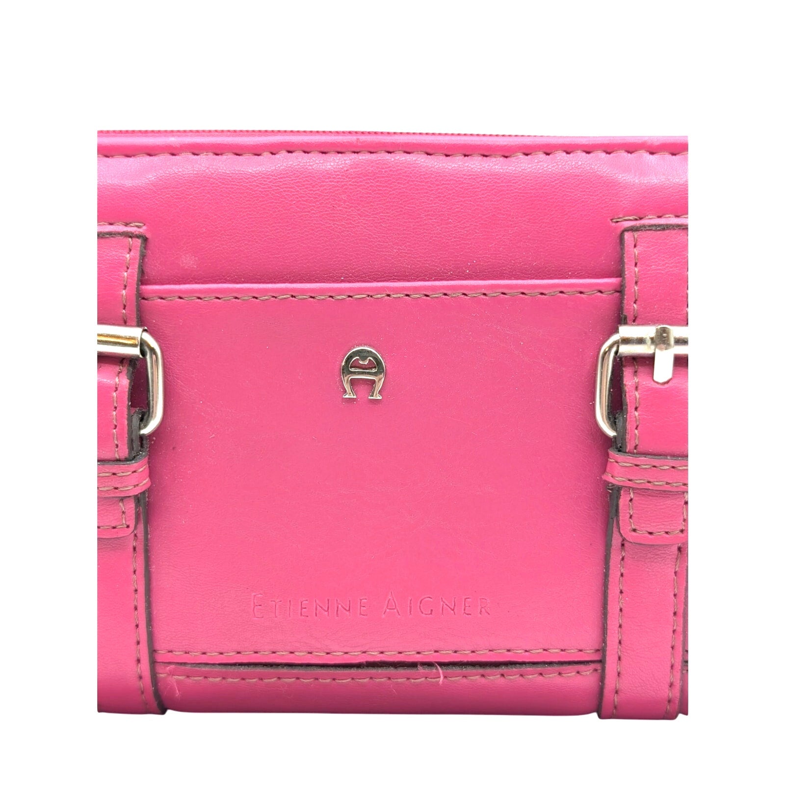 Etienne Aigner Personal Assets Collection Pink Leather Cynthia Style Signature 'A' Organizer Clutch Wallet. Zip around clutch. Signature 'A' & Buckle Hardware on smooth pink leather front. Pre-owned, this wallet is in great condition.