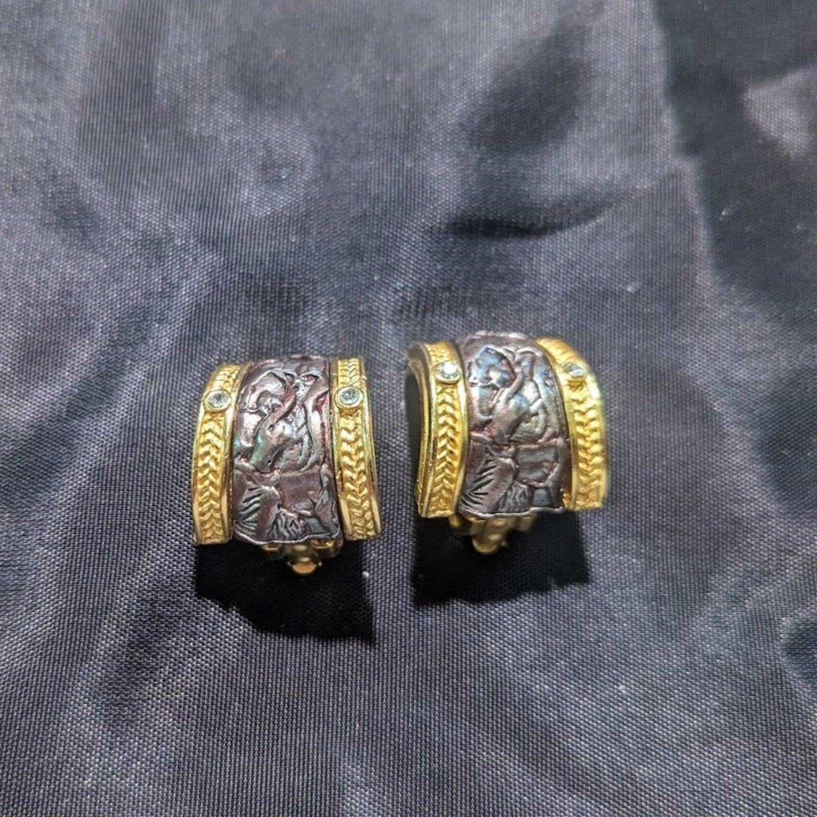 These Etruscan-inspired clip on earrings remind me of another big jewelry designer. They are made well and are substantial. They are not marked but they are in great pre-loved condition and don't appear to ever have been worn.