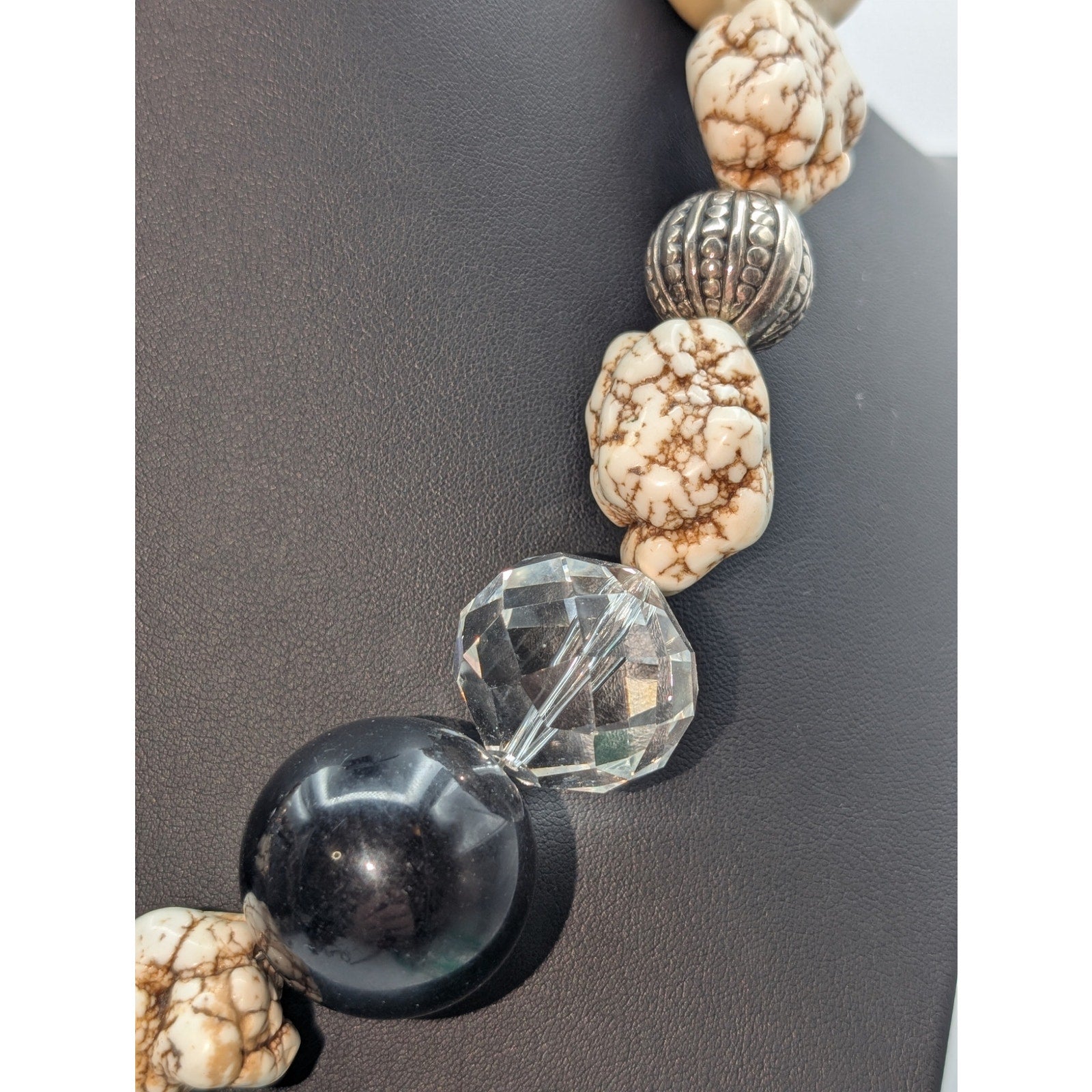 Extra Large Chunky Heavy Stone Glass Faux Pearl Rhinestone Ball 21.25" Necklace. Pre-owned, this necklace is in excellent condition. The largest beads measure approximately 1.25" in diameter.