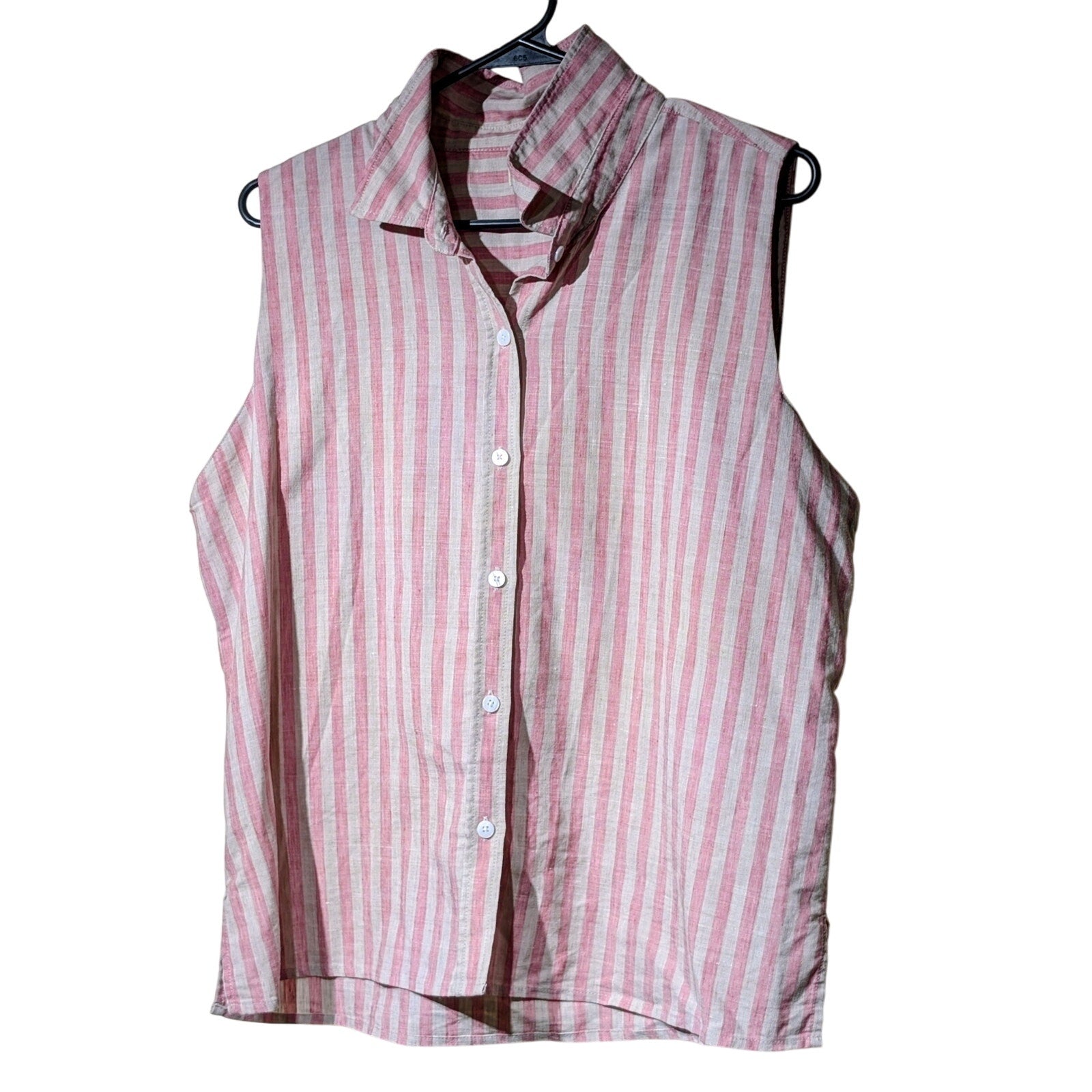 Faherty Malibu Pink Stripe Sleeveless Linen Button Front Shirt Womens Sz XL