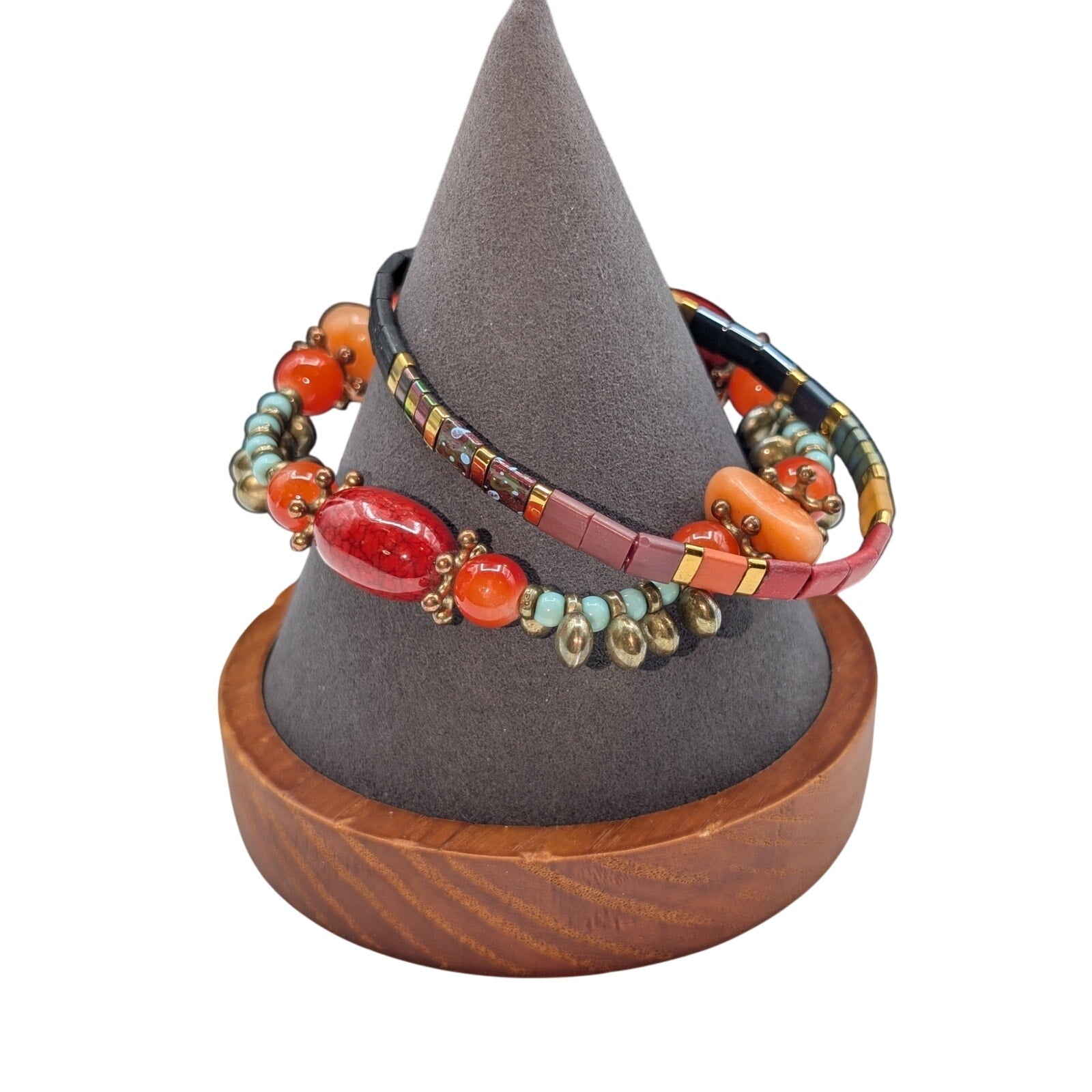 Five Strand Orange Acrylic Beaded Necklace and Three Stretch Bracelet Mixed Lot
